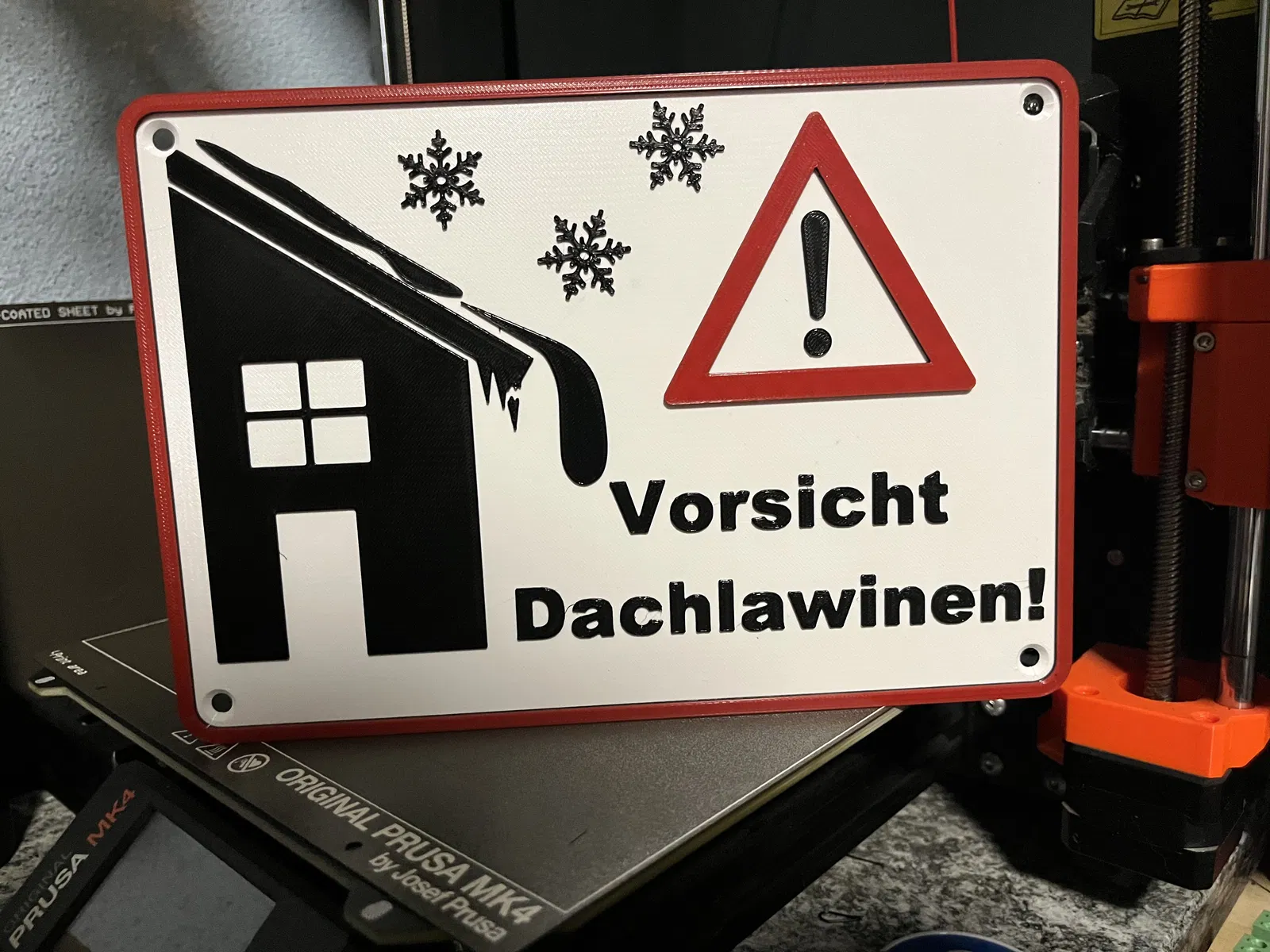 Biển báo "Cẩn thận Tuyết lở trên mái nhà" (Schild Vorsicht Dachlawinen) này có sẵn các phiên bản có lỗ và không có lỗ, giúp cảnh báo nguy hiểm tiềm ẩn từ tuyết rơi trên mái nhà trong mùa đông. Tải xuống mô hình 3D để in và sử dụng.