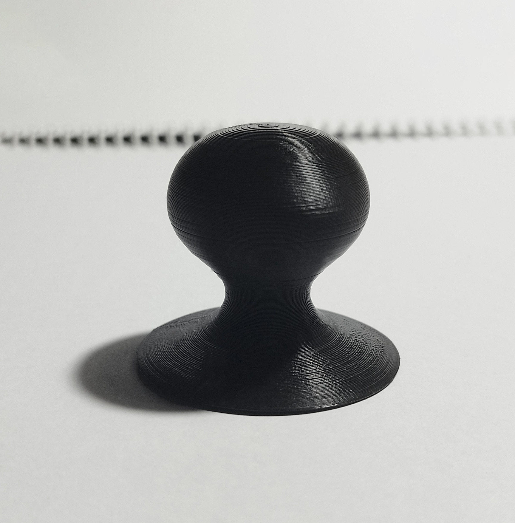 Nút vặn/tay nắm tròn, hoàn hảo cho ngăn kéo hoặc cửa tủ. Mẫu được in bằng nhựa PLA Grilon3 trên máy in Artillery Genius với tốc độ 120 mm/s, độ dày ruột 20% và độ dày thành 1.32 mm, không cần đế đỡ.