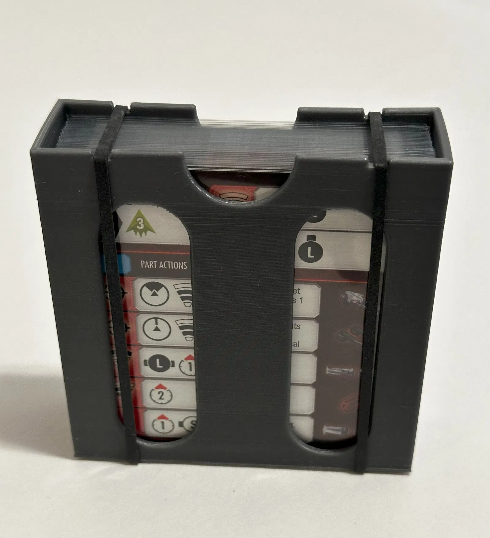 Hộp đựng thẻ cho các lá bài khung gầm và A.I. cho trò chơi Snap Ships Tactics. Lý tưởng để giữ các lá bài của bạn có tổ chức và được bảo vệ, ngay cả khi sử dụng bao đựng.