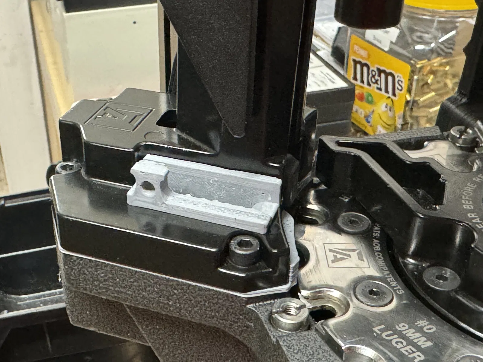 Chặn bộ cấp vỏ đạn trên máy Frankford Arsenal X-10. Một bản chỉnh sửa chi tiết, cải thiện độ vừa vặn và hoàn thiện, có thêm dấu hiệu của nhà sản xuất. Hướng dẫn lắp đặt và cài đặt in chi tiết.