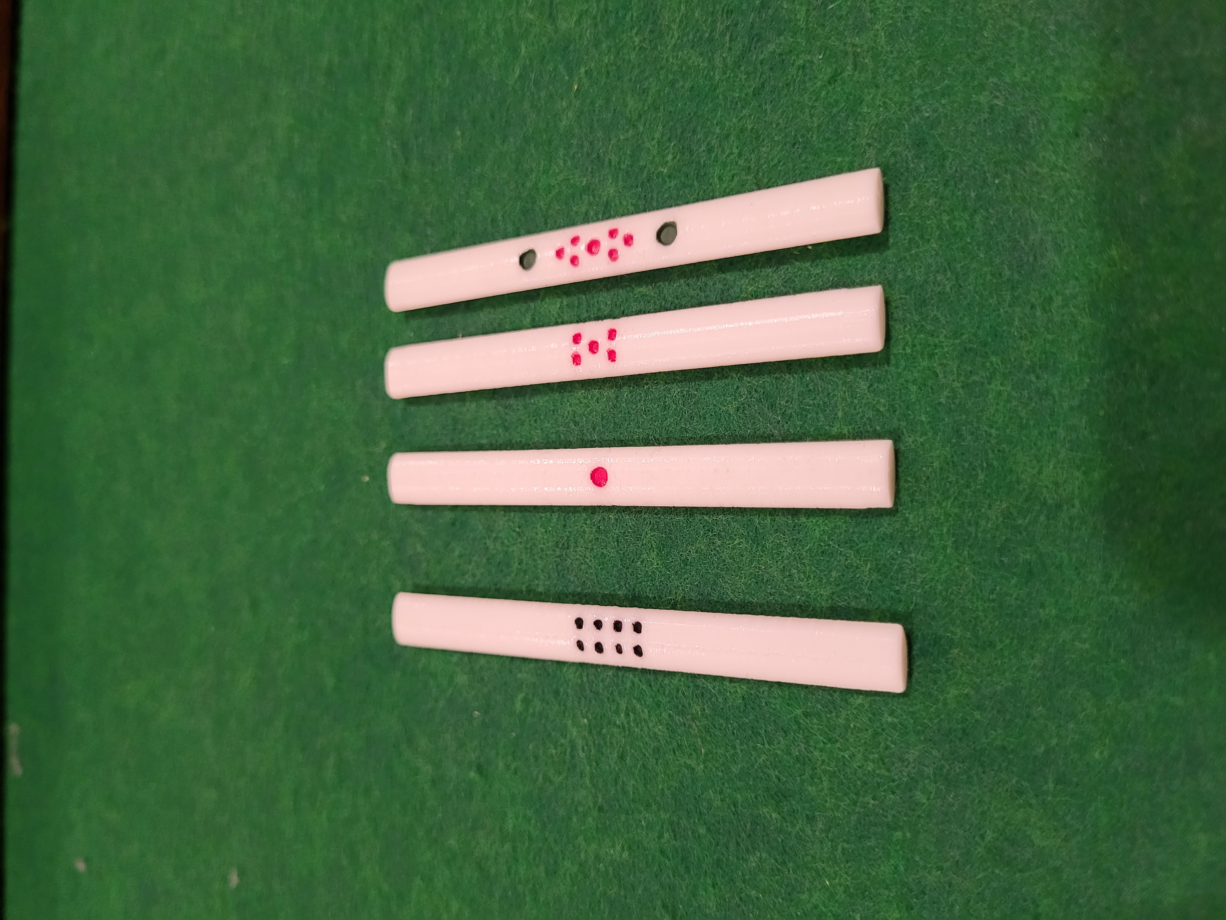 Thanh Tenbou cho riichi mahjong. Chúng được thiết kế để in theo chiều thẳng đứng (dọc) để giữ nguyên hình dạng trụ. Bạn có thể in trực tiếp, nhưng có thể cần dùng brim nếu gặp sự cố với độ bám dính trên bàn in.