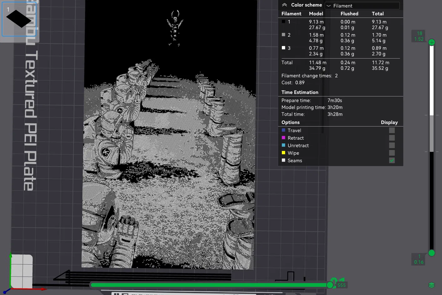 Ở lớp thứ #12 (1.04mm) đổi sang White cho đến hết.