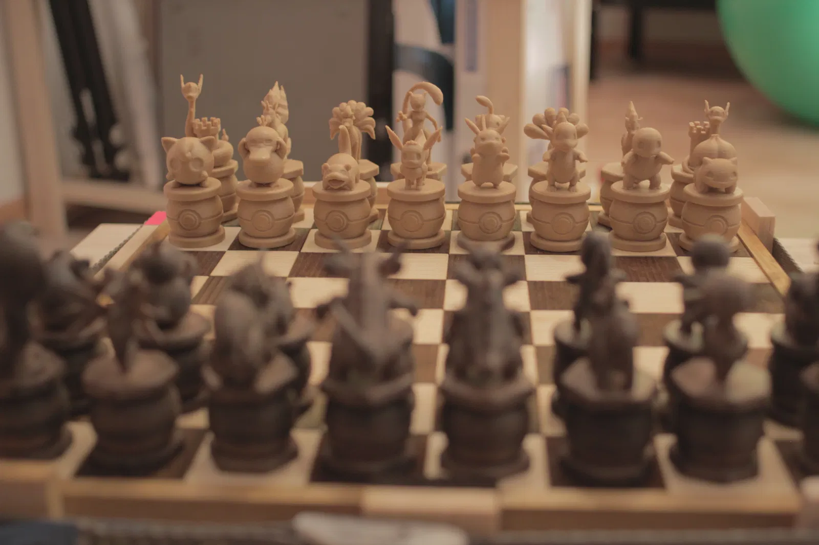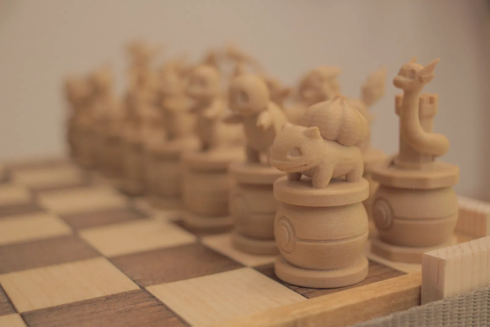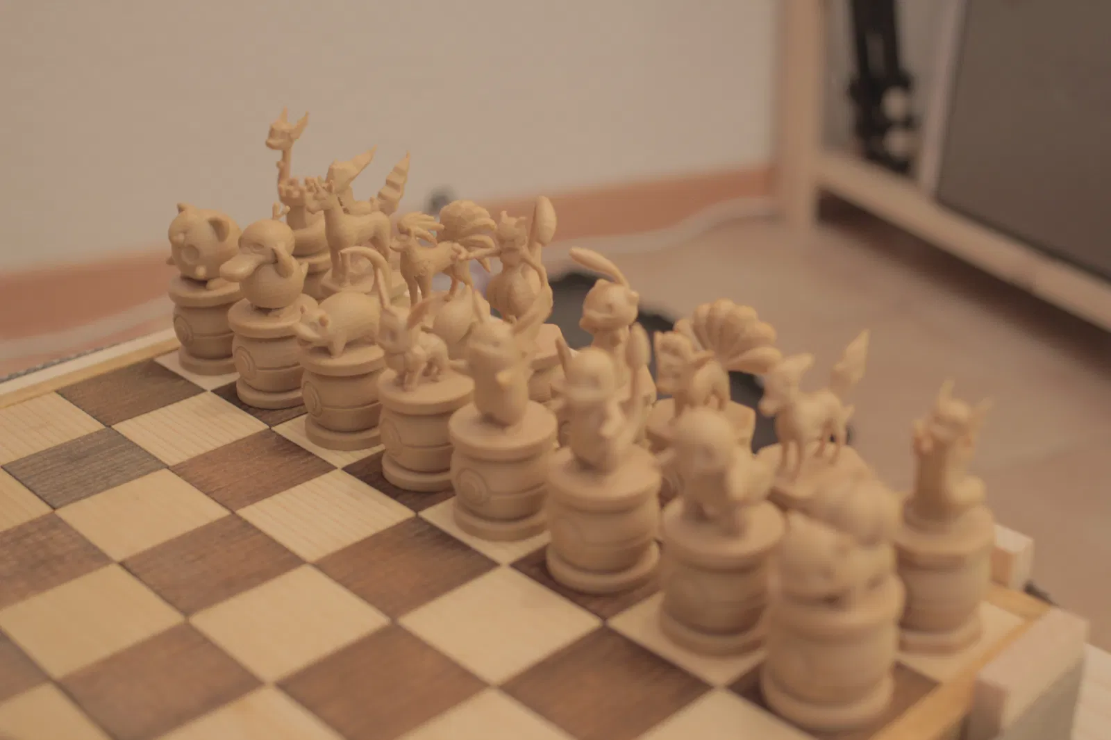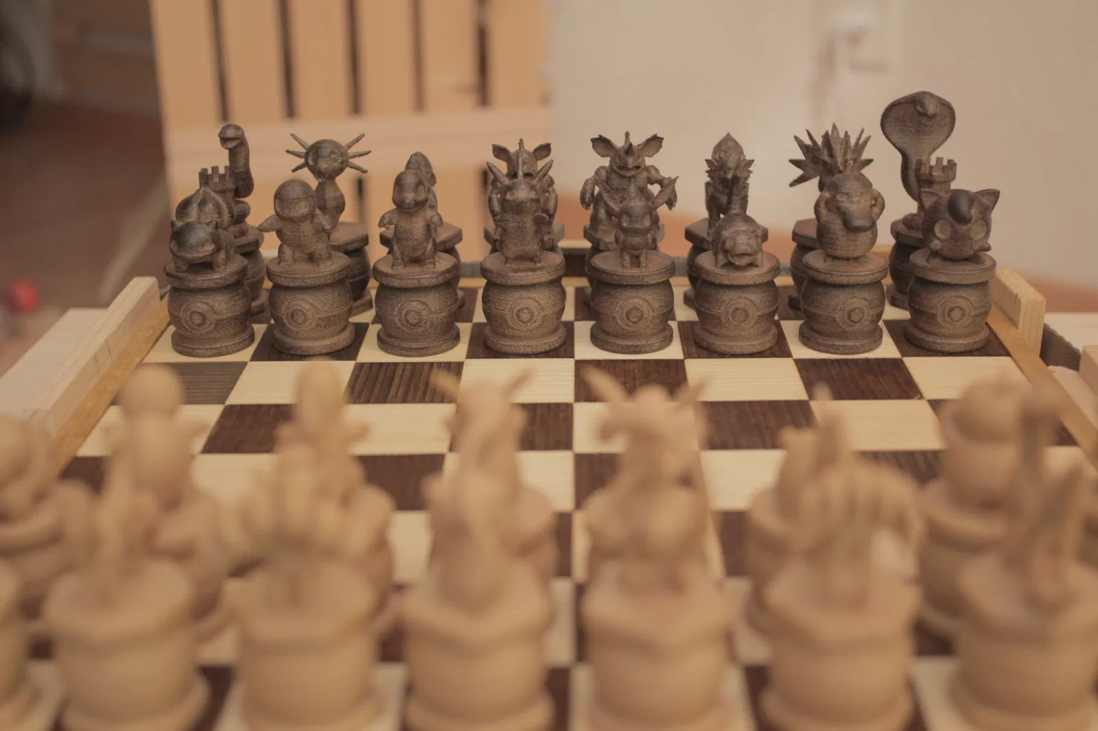 Bộ cờ vua Pokémon độc đáo, hoàn hảo cho bạn bè hoặc người thân. Đế nhân vật rỗng, có thể nhét ốc để tăng độ vững chãi. Dành cho người in 3D nâng cao.
