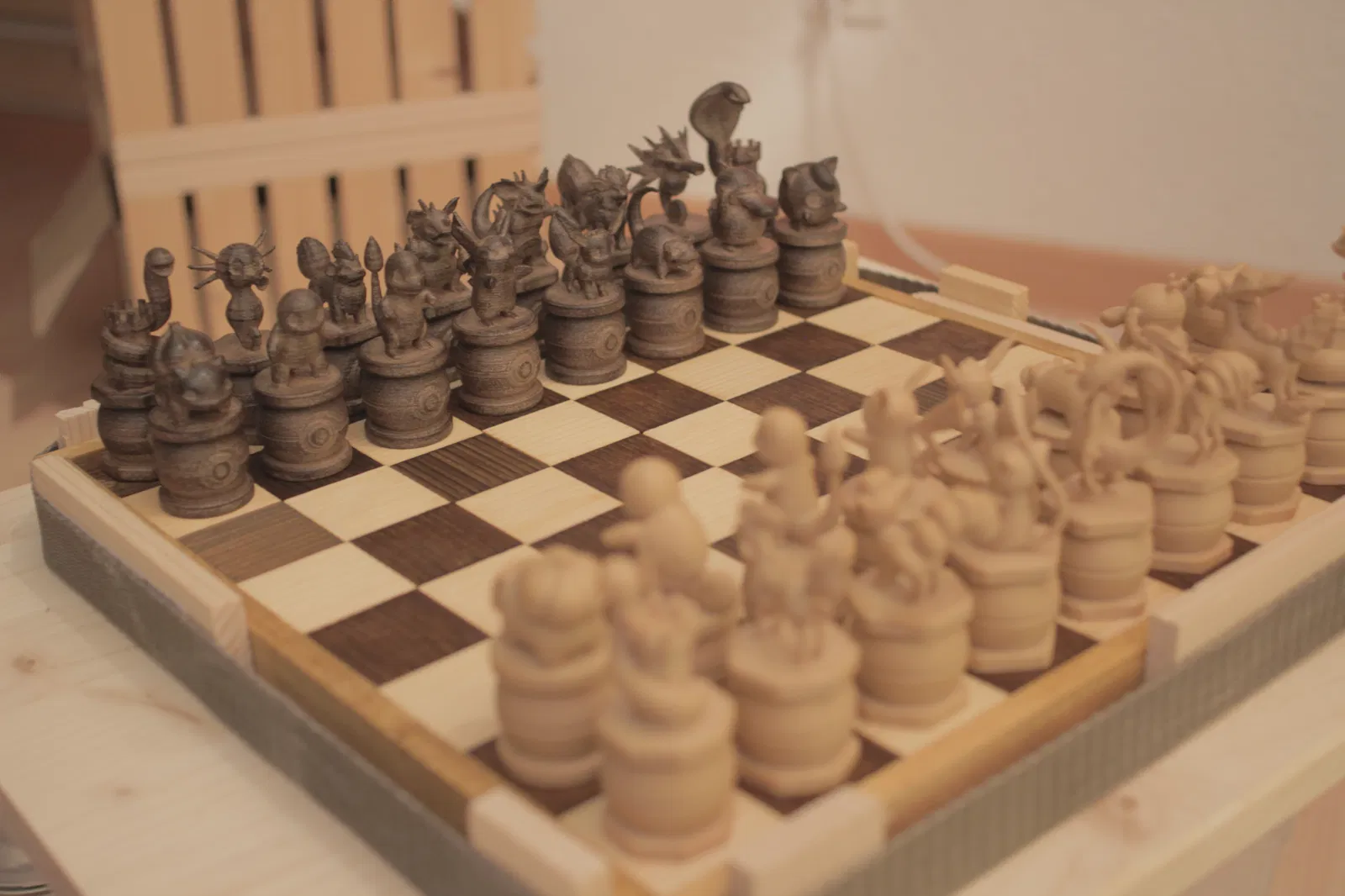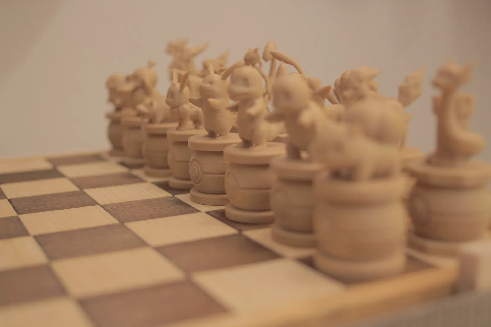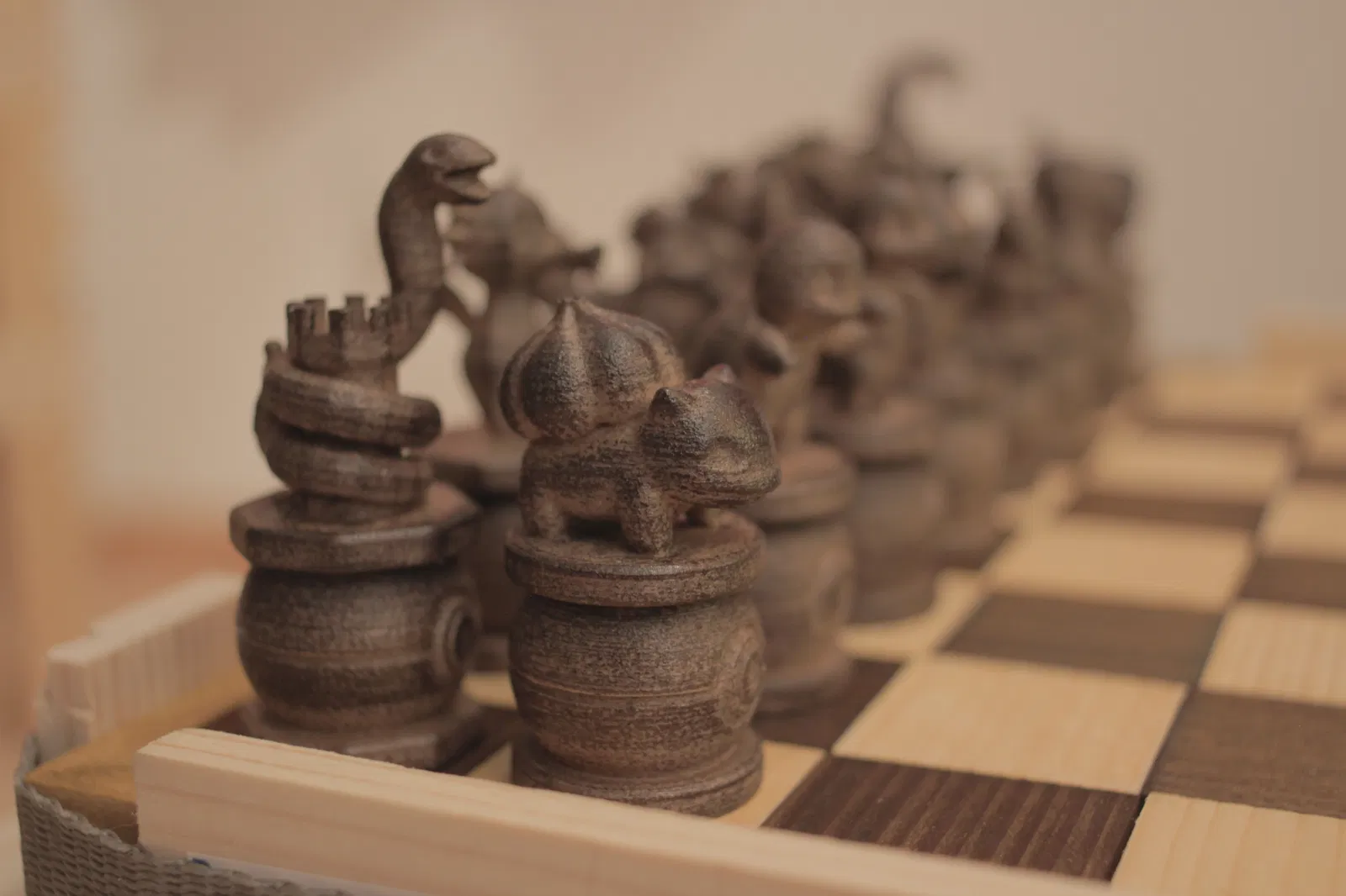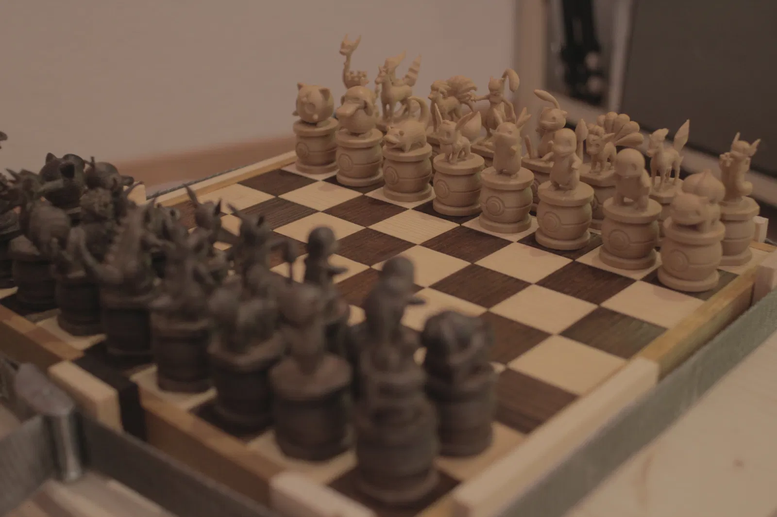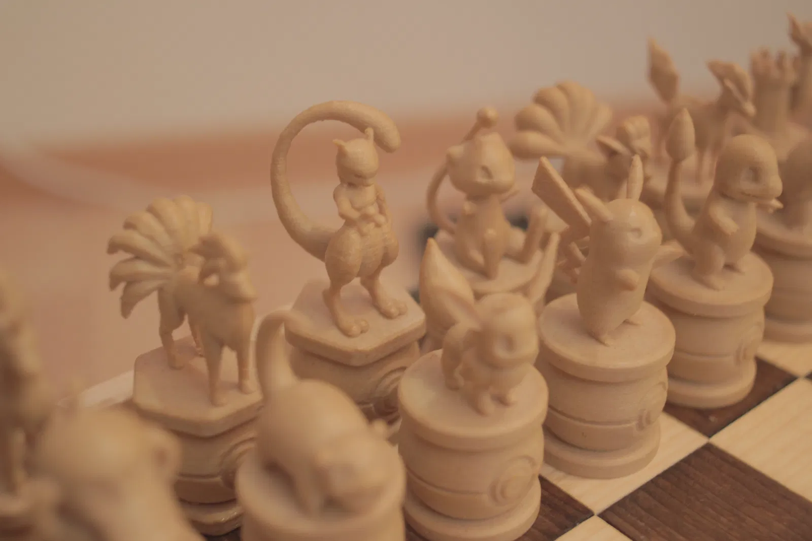 Bộ cờ vua Pokémon độc đáo, hoàn hảo cho bạn bè hoặc người thân. Đế nhân vật rỗng, có thể nhét ốc để tăng độ vững chãi. Dành cho người in 3D nâng cao.