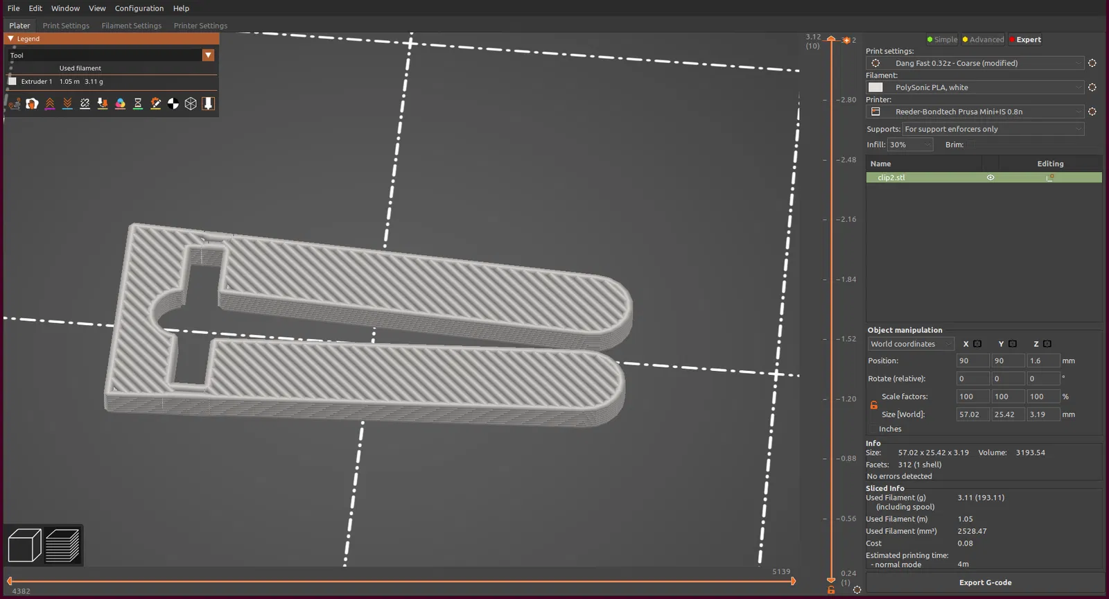 Tui chỉnh lại cài đặt in để đạt khối lượng 3 gram, nhằm cân với khối lượng của quả tạ gậy golf của tui.