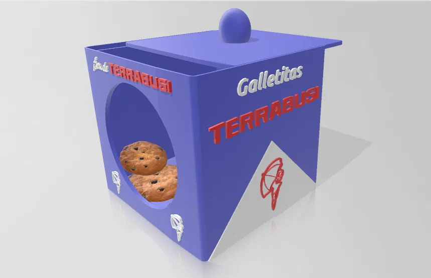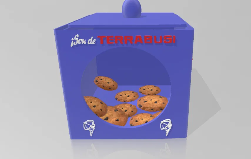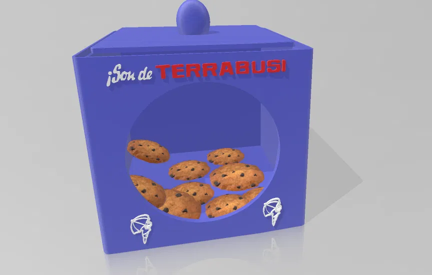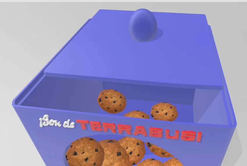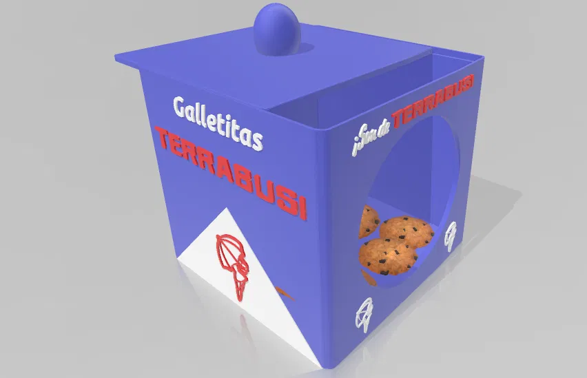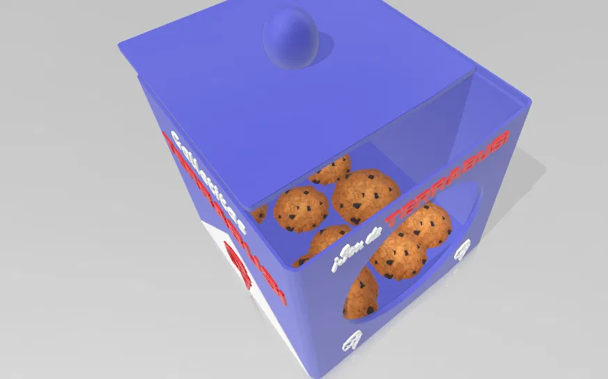 Mô hình hộp đựng bánh quy với thiết kế cổ điển, có nắp và phần nhìn xuyên thấu. Khuyến khích đặt thêm kính hoặc nhựa trong suốt vào phần này để tăng tính thẩm mỹ và bảo quản tốt hơn.