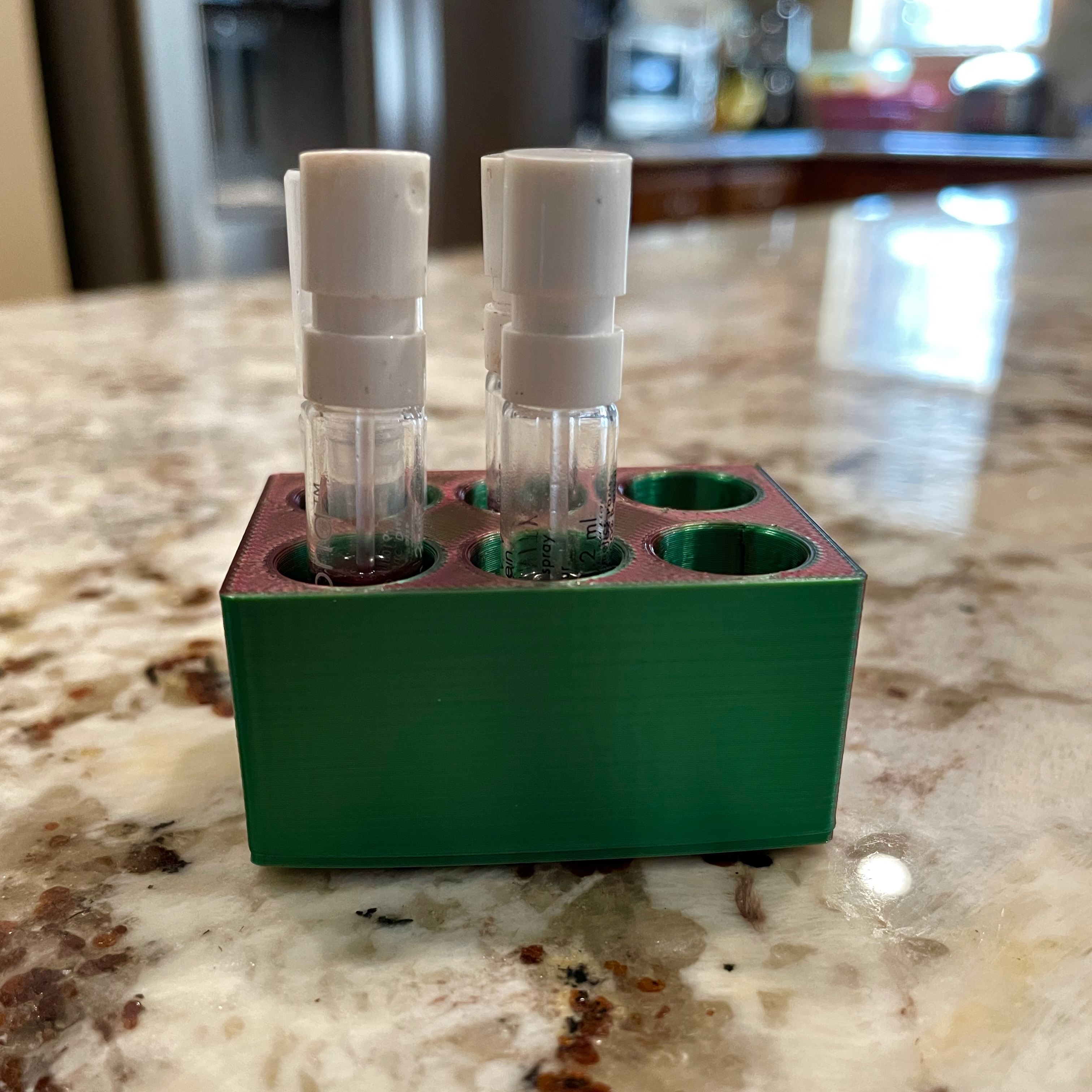 Hộp đựng đơn giản, thiết kế để chứa tối đa 6 chai mẫu nước hoa nhỏ, giúp bạn sắp xếp gọn gàng trên bàn trang điểm hoặc bất kỳ đâu. Dễ dàng in với PLA, STL.