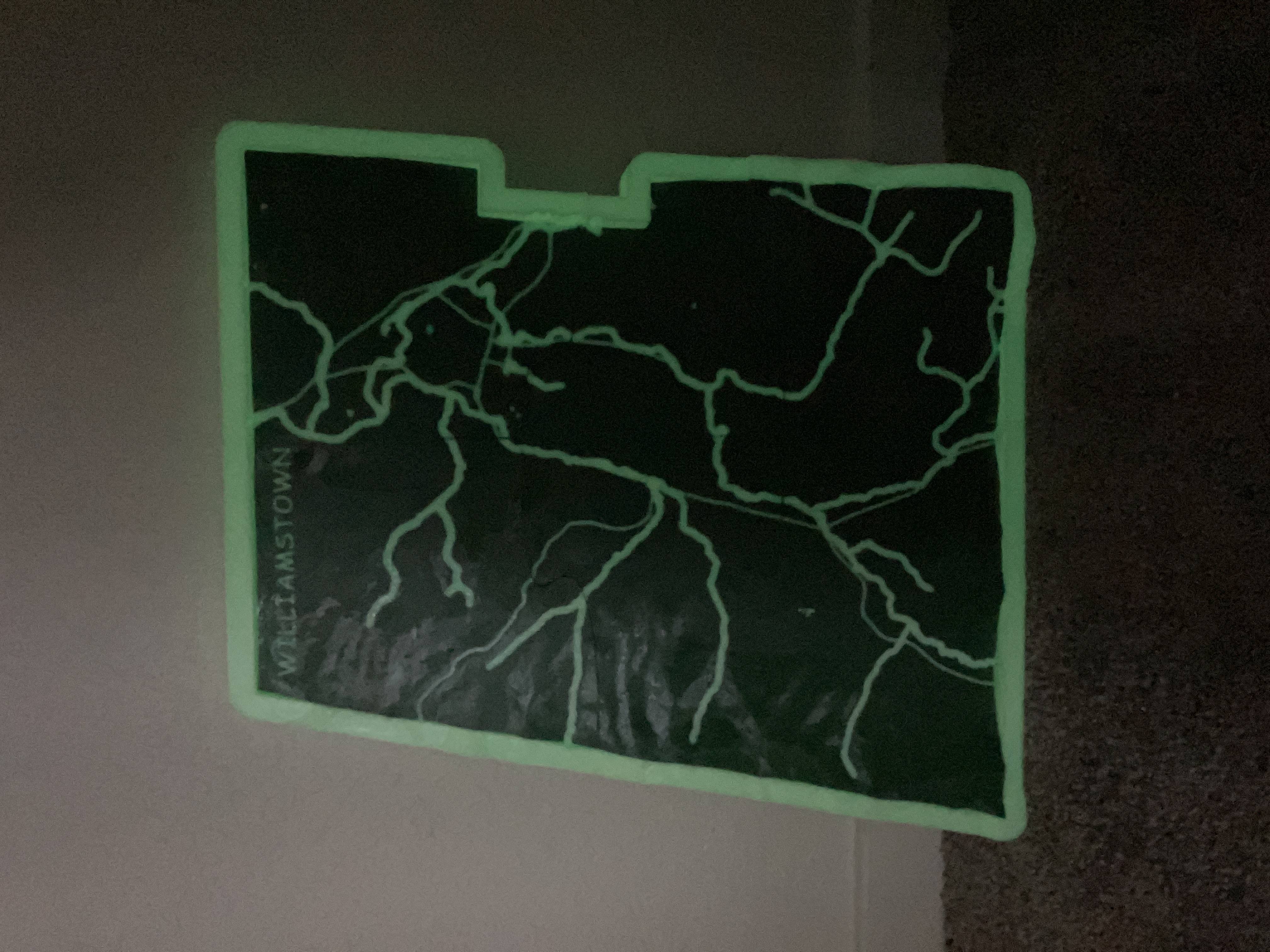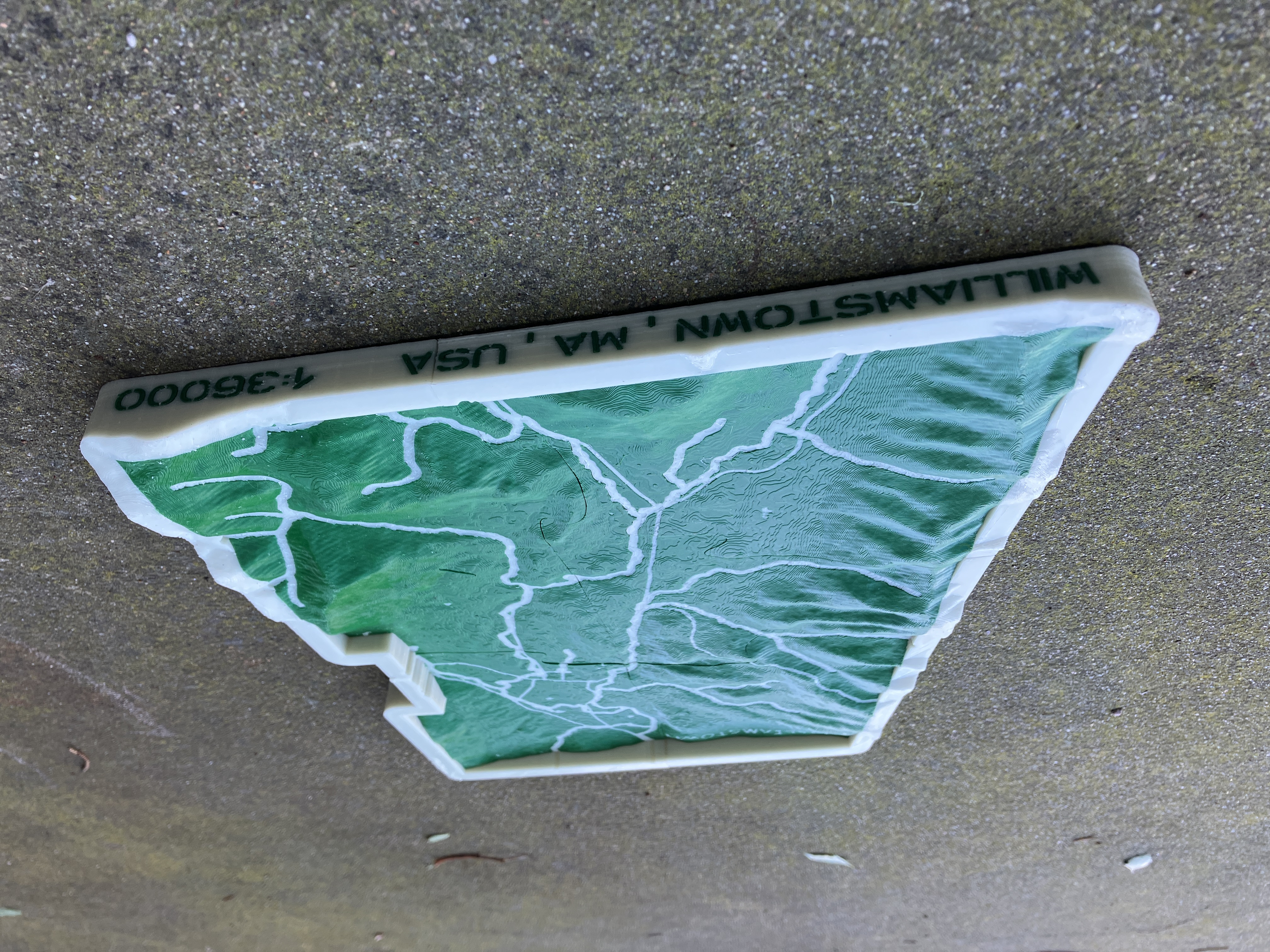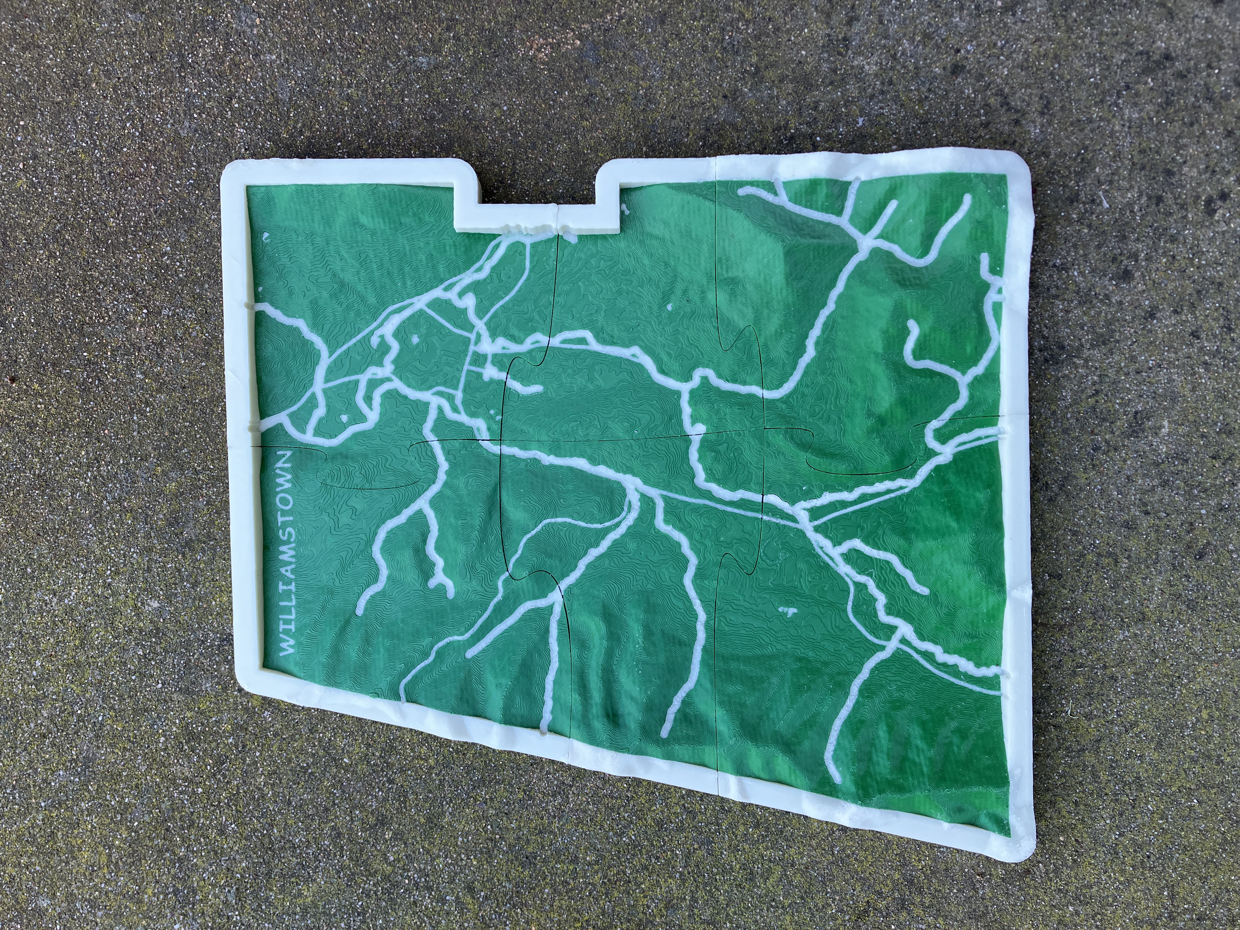 Bản đồ này được tạo ở tỷ lệ 1:36000 với phép chiếu UTM18N. Tất cả độ cao đều theo tỷ lệ, KHÔNG có độ phóng đại theo chiều dọc. Các đường dày hơn thể hiện các con suối và các đường mỏng hơn vẽ các tuyến đường cao tốc và đường phố. Khung tích hợp phác thảo ranh giới của Williamstown và tạo sự chuyển tiếp nếu treo trên tường để trang trí.