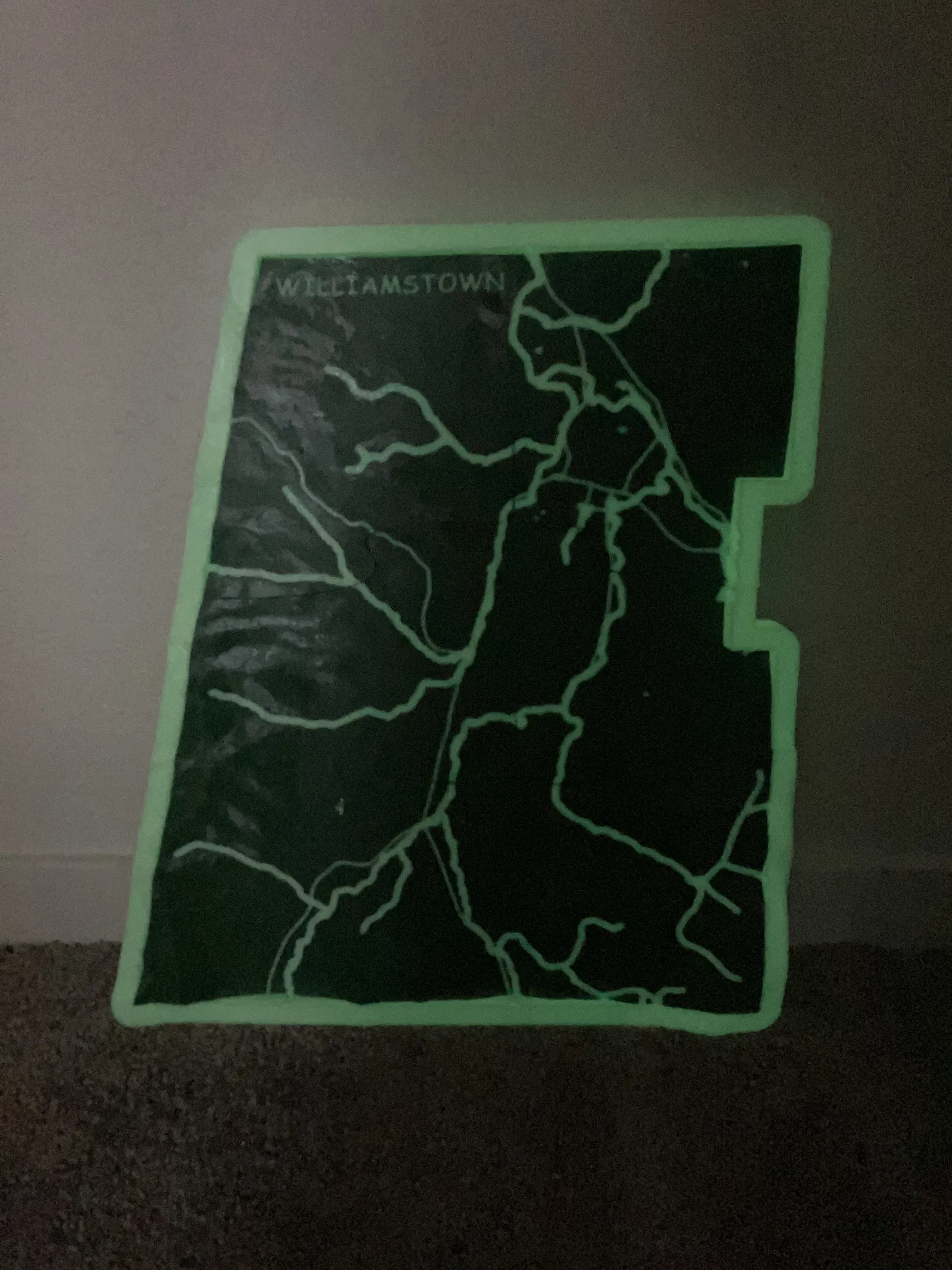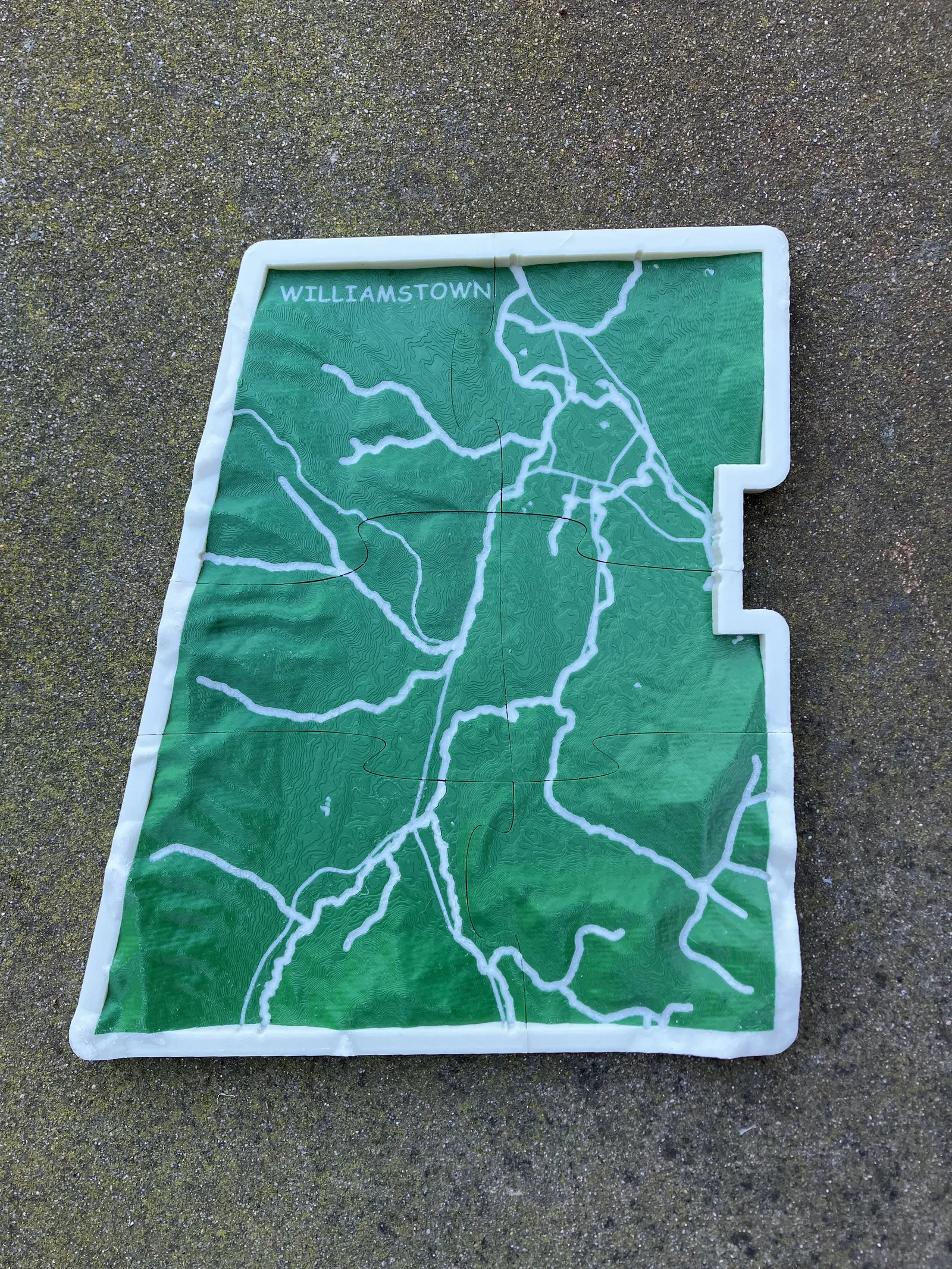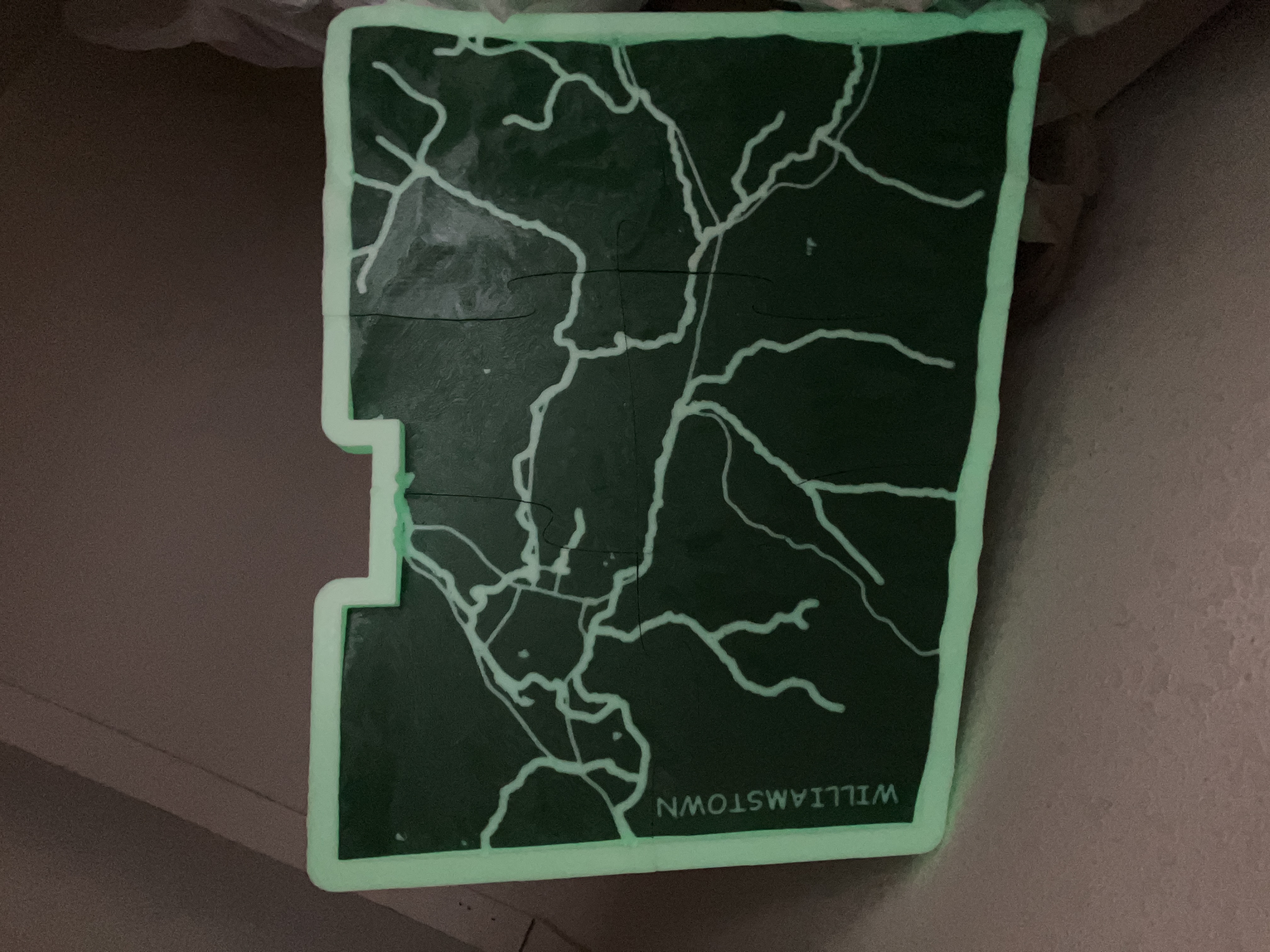 Bản đồ này được tạo ở tỷ lệ 1:36000 với phép chiếu UTM18N. Tất cả độ cao đều theo tỷ lệ, KHÔNG có độ phóng đại theo chiều dọc. Các đường dày hơn thể hiện các con suối và các đường mỏng hơn vẽ các tuyến đường cao tốc và đường phố. Khung tích hợp phác thảo ranh giới của Williamstown và tạo sự chuyển tiếp nếu treo trên tường để trang trí.