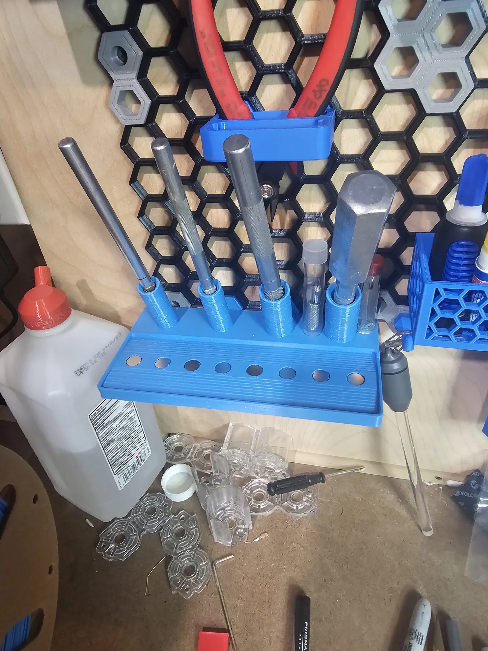 Tôi đã tạo một bản chỉnh sửa cho tường lưu trữ dạng tổ ong của mình. Tôi có một đống nam châm 10mm nên tôi đã chỉnh sửa khay để có thể sử dụng chúng. Tôi đã dùng keo siêu dính để cố định nam châm.