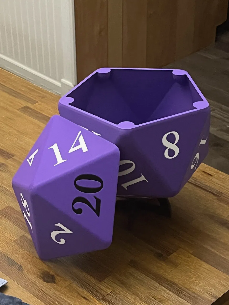 Thiết kế hộp D20 cỡ XL để in trên Prusa XL. In 2 phần, có nam châm để mở ra cất đồ. Hướng dẫn chi tiết cách in, nhét nam châm và tùy chỉnh cho anh em.