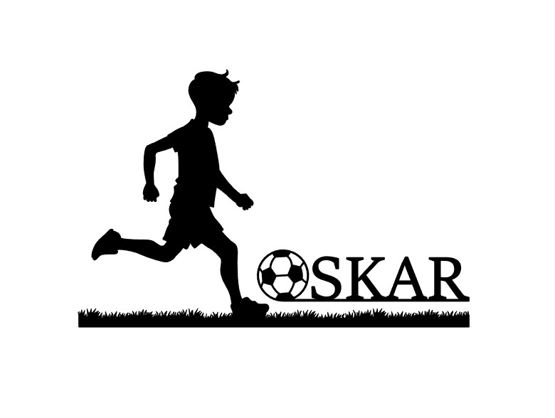 Mô hình biển tên độc đáo cho bé Oskar đang say sưa đá bóng, thể hiện niềm đam mê thể thao. Hoàn hảo để trang trí phòng hoặc làm quà tặng ý nghĩa cho các bạn nhỏ yêu thích bóng đá.