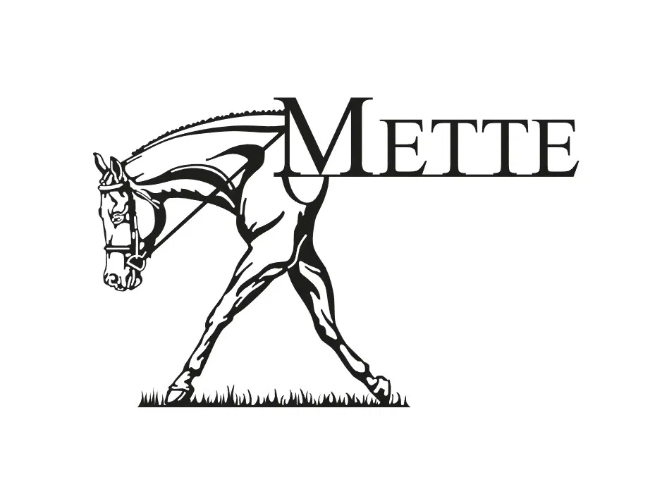 Mẫu in 3D Ngựa & Tên: Mô tả 'Ngựa Mette đang đi dạo trên cỏ'. Thích hợp cho các dự án in 3D liên quan đến động vật, biển tên, hoặc tác phẩm nghệ thuật.