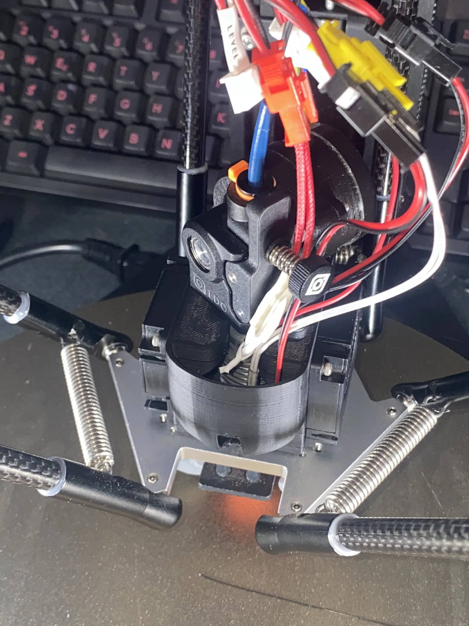 Ok vậy là, tui bắt đầu từ một cái vỏ bộ phận làm mát (effector housing) tùy chỉnh (mà tui không tìm lại được nguồn nữa, dù là ở đây hay trên Thingi, tui xin lỗi) mà tui đã sửa đổi để gắn cái Orbiter v2.0 nhằm chuyển đổi máy in sang chế độ dẫn động trực tiếp (direct drive). Nhìn chung là một thiết kế đơn giản nhưng hoạt động tốt và dễ bảo trì.