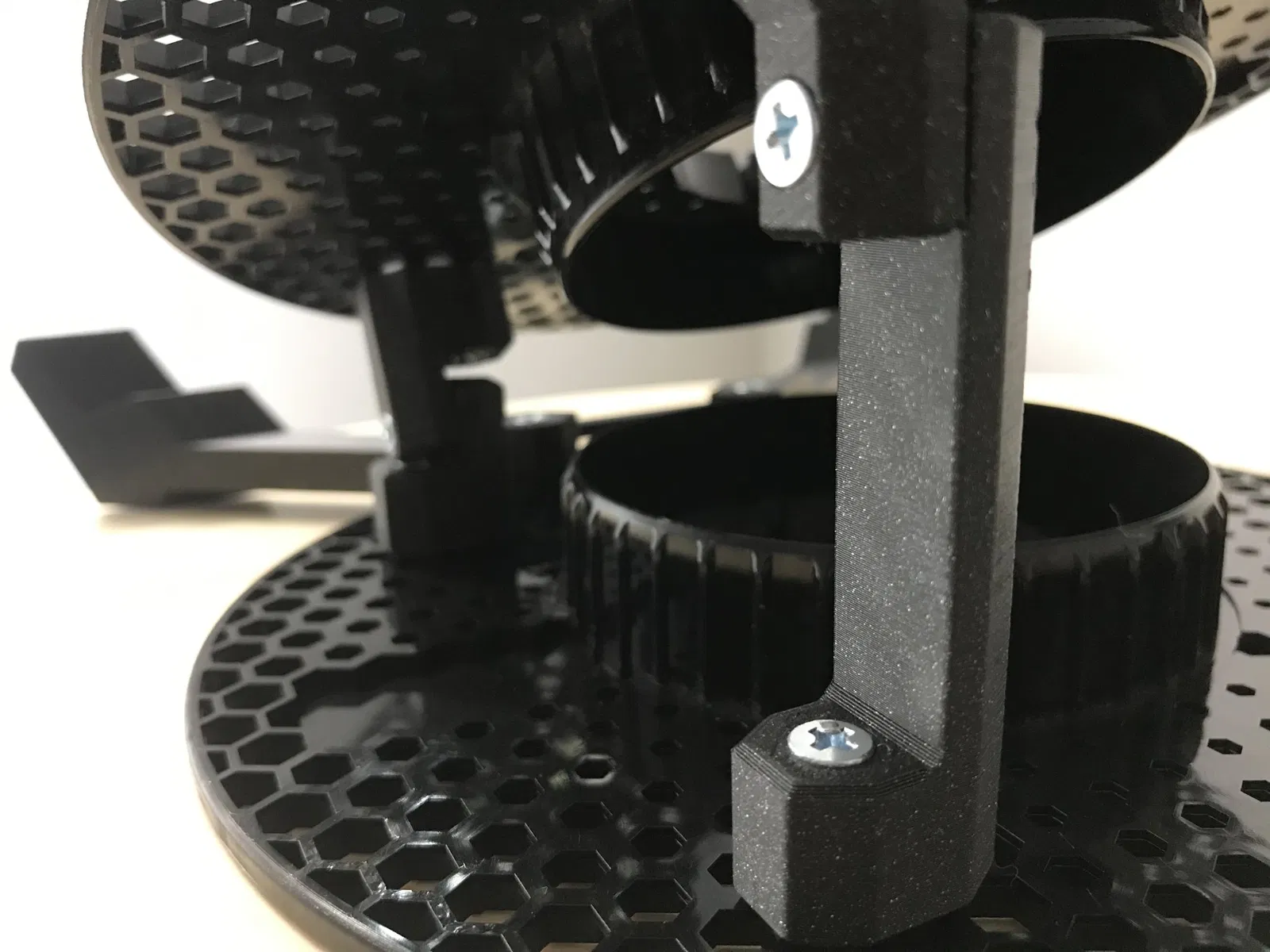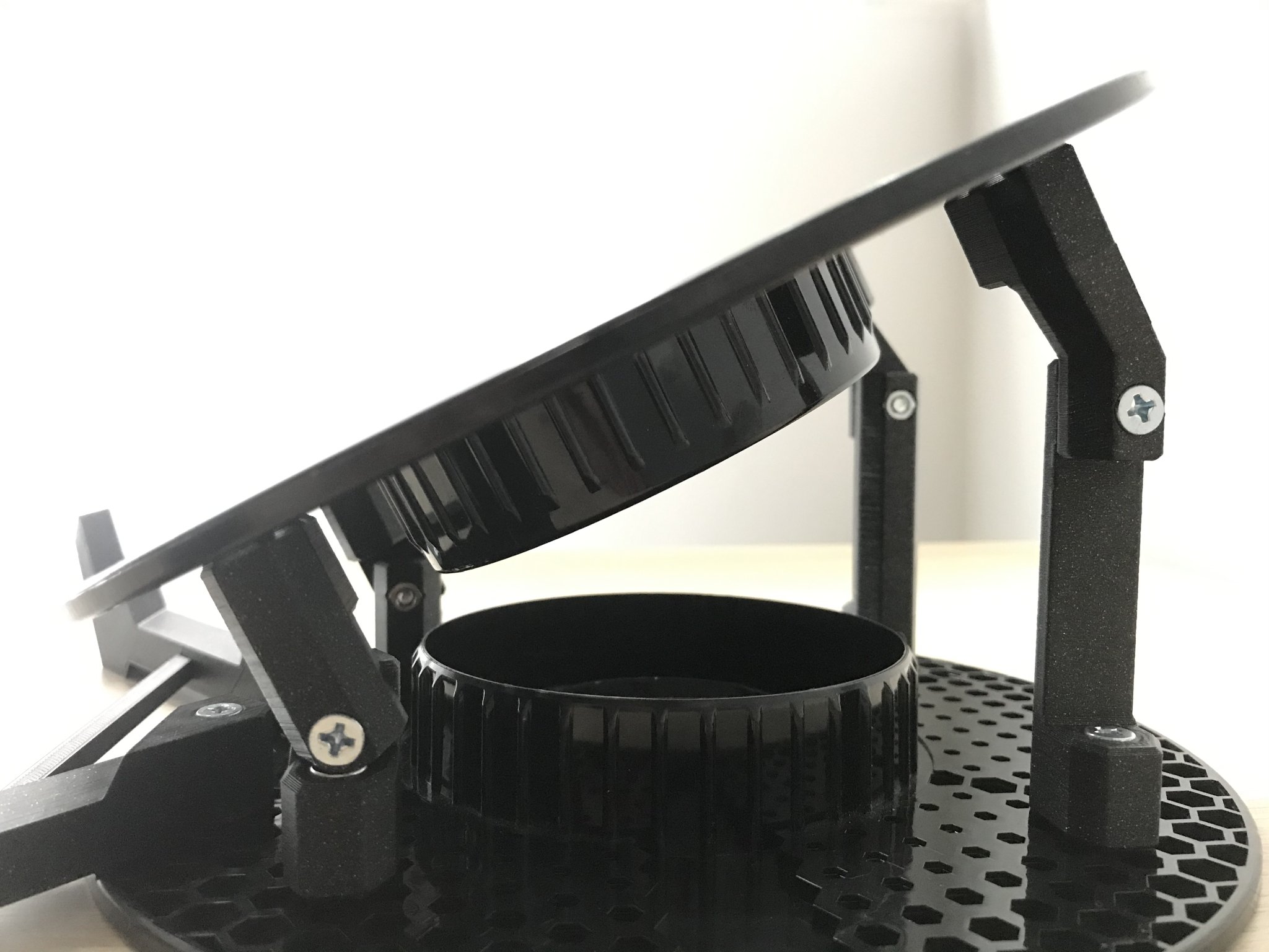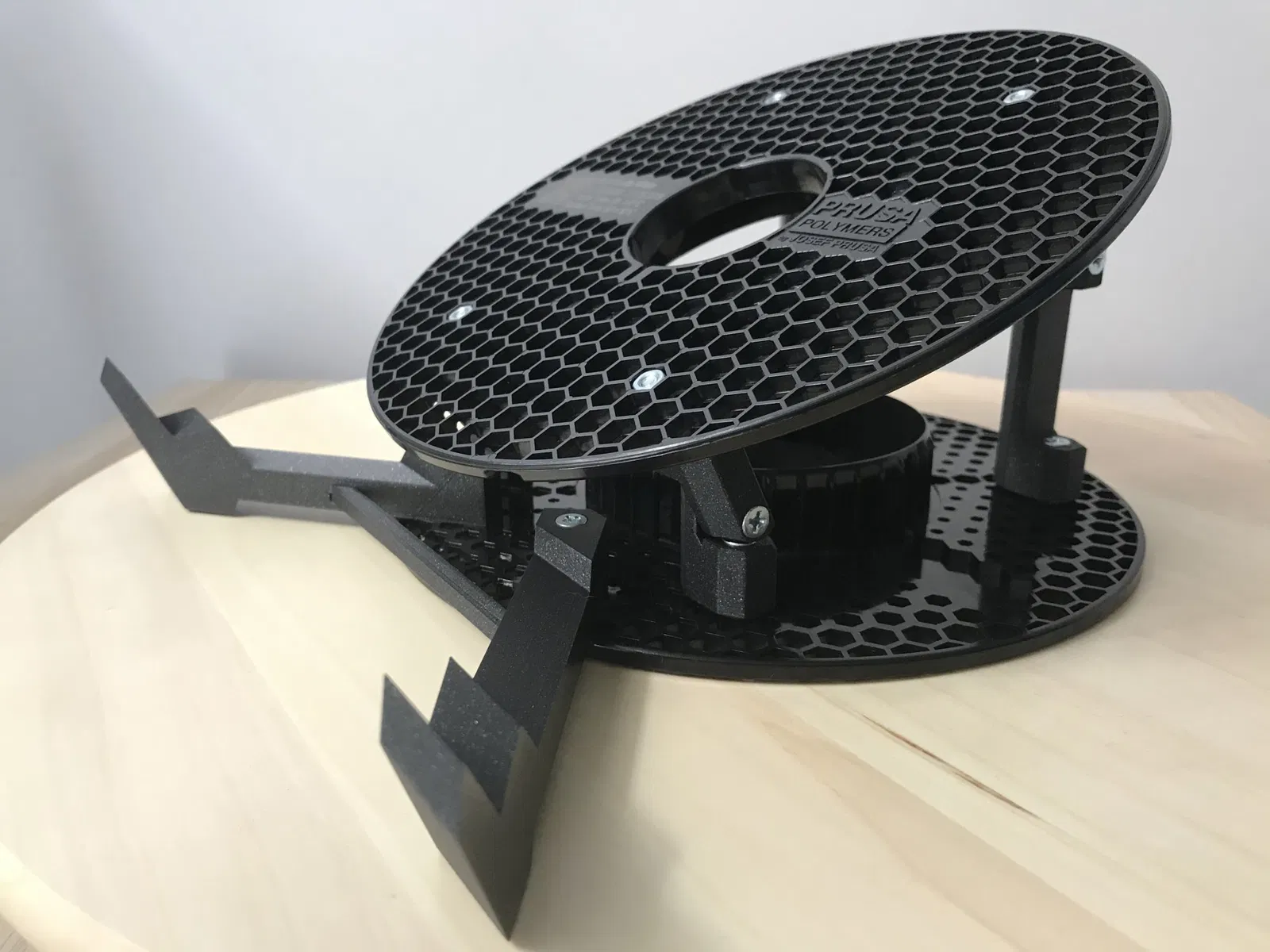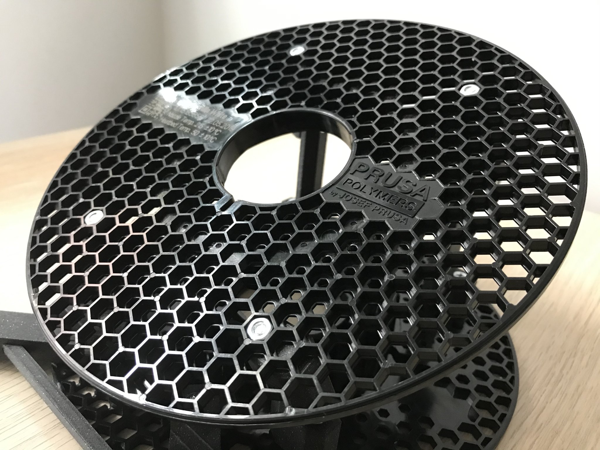 Lưới hình lục giác của các cuộn prusament rất dễ dàng để gắn một số bu lông và đai ốc vào đó. Tôi cần một giá đỡ laptop có thể giảm bớt cơn đau cổ do luôn phải nhìn xuống khi làm việc trên đó, vì vậy chỉ cần một vài bộ phận, đai ốc và bu lông, và tôi đã hoàn thành khá dễ dàng!