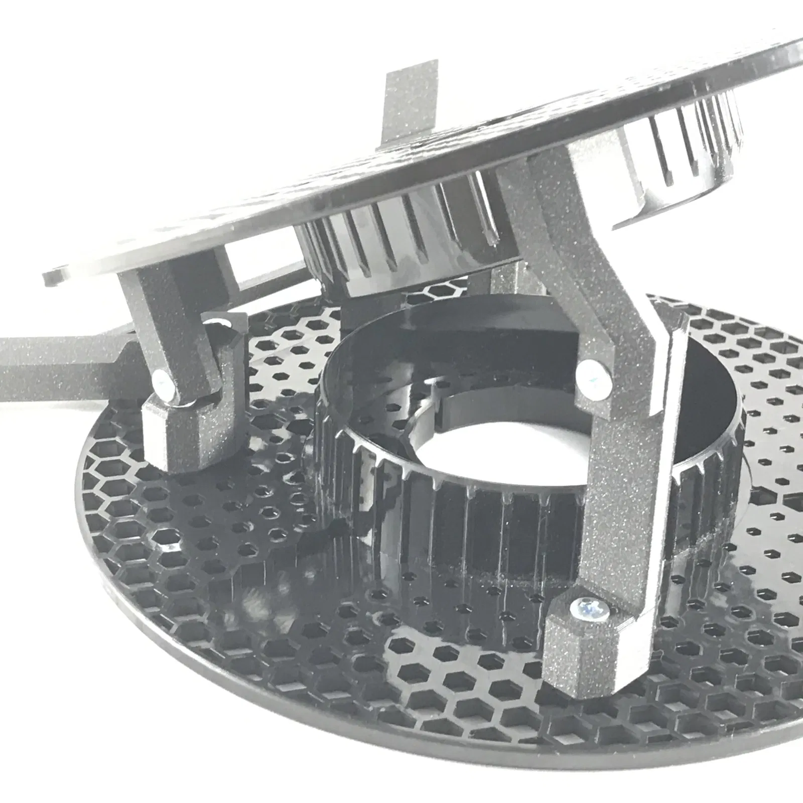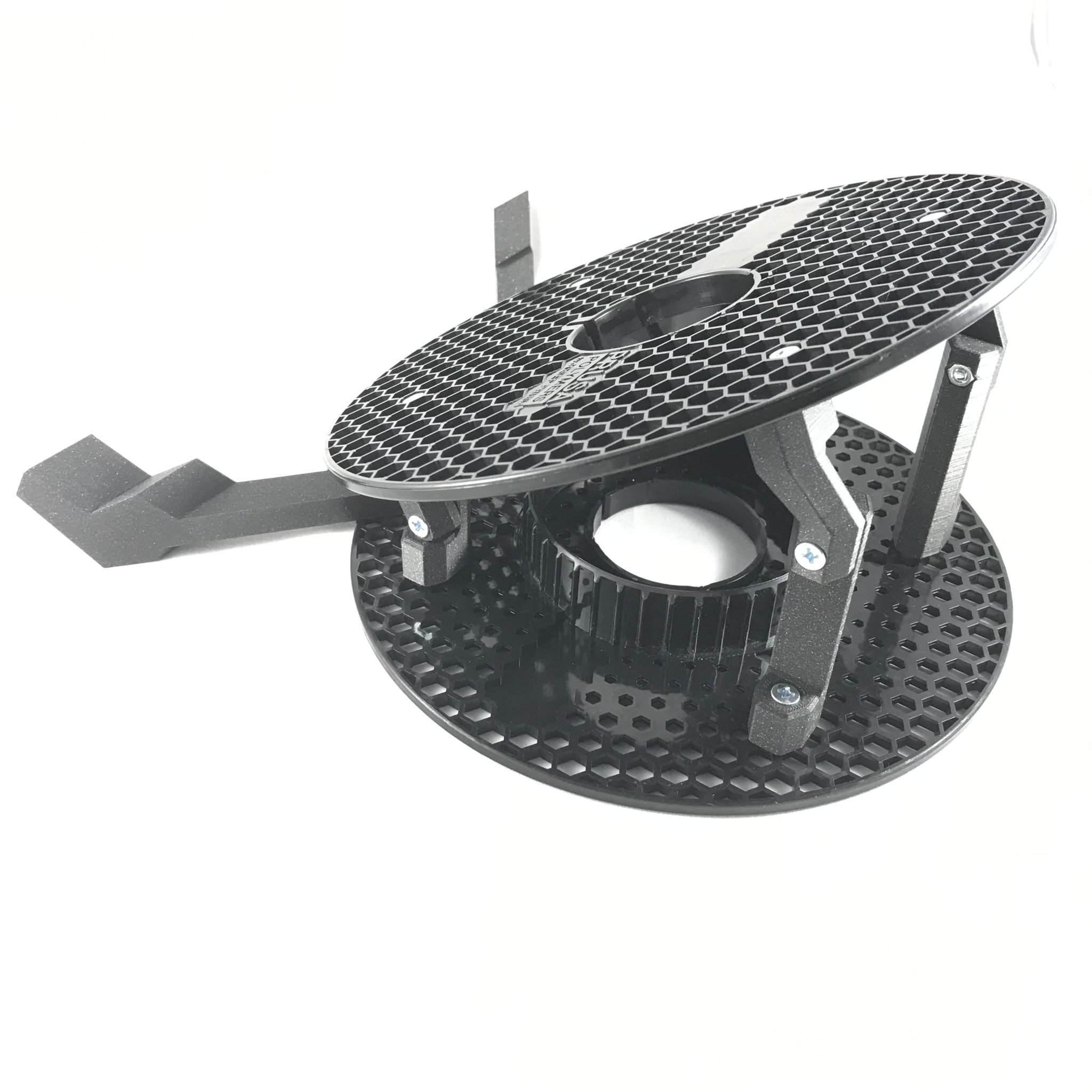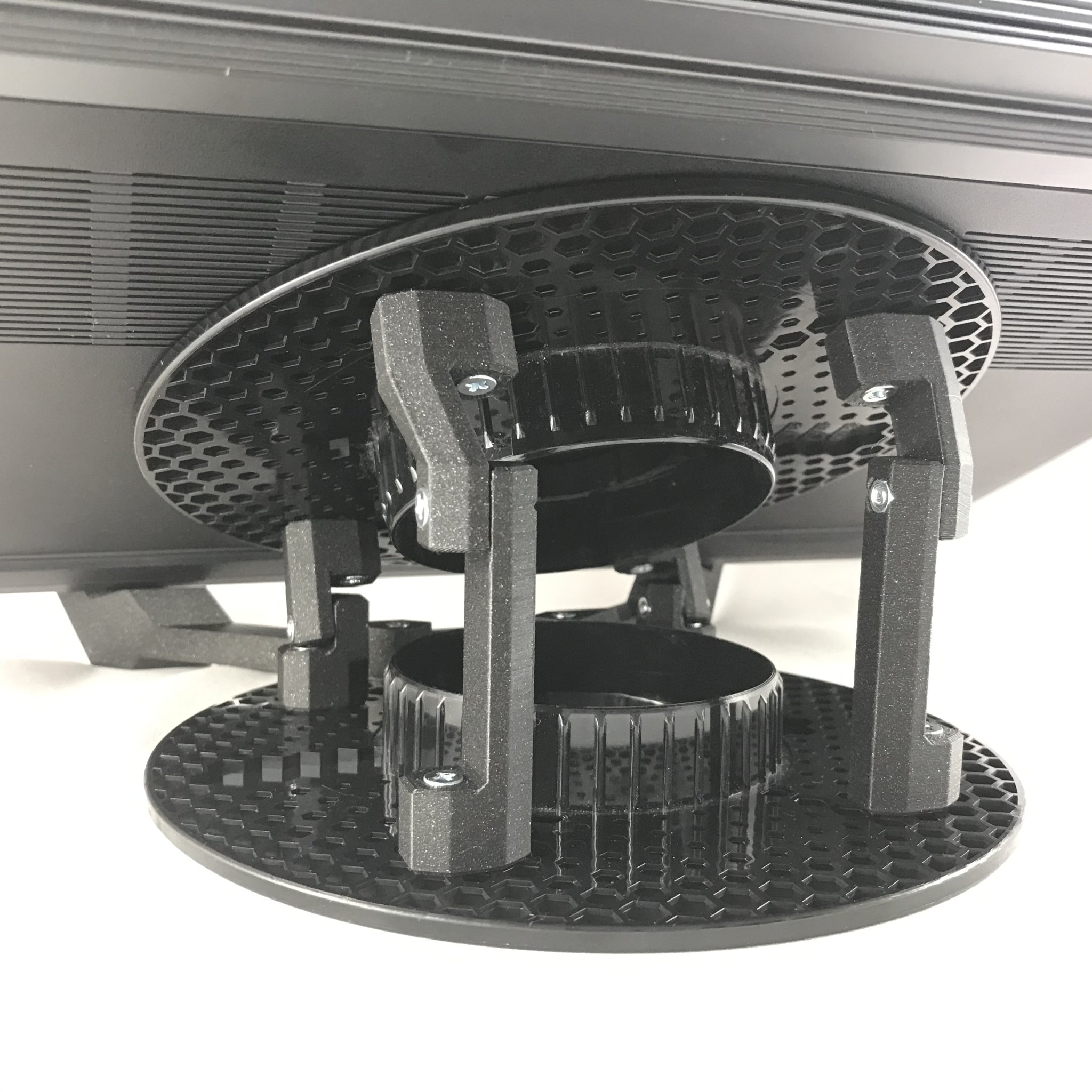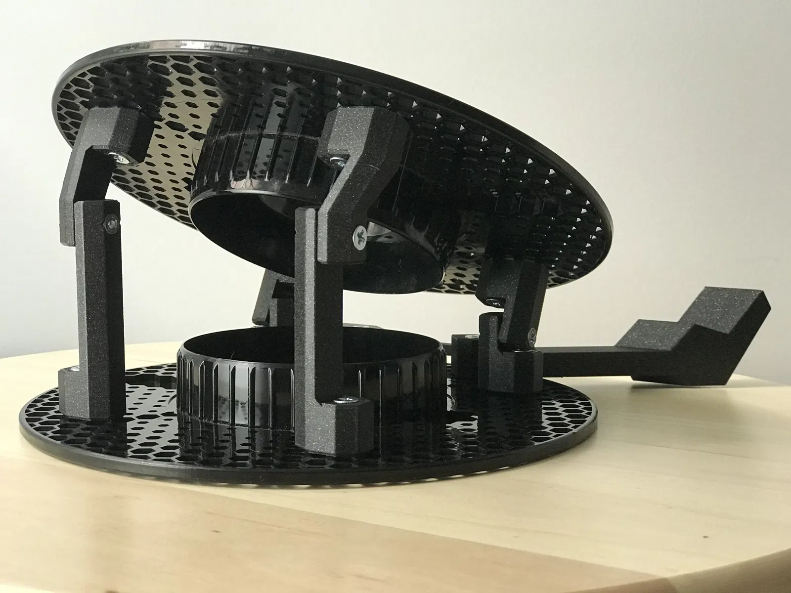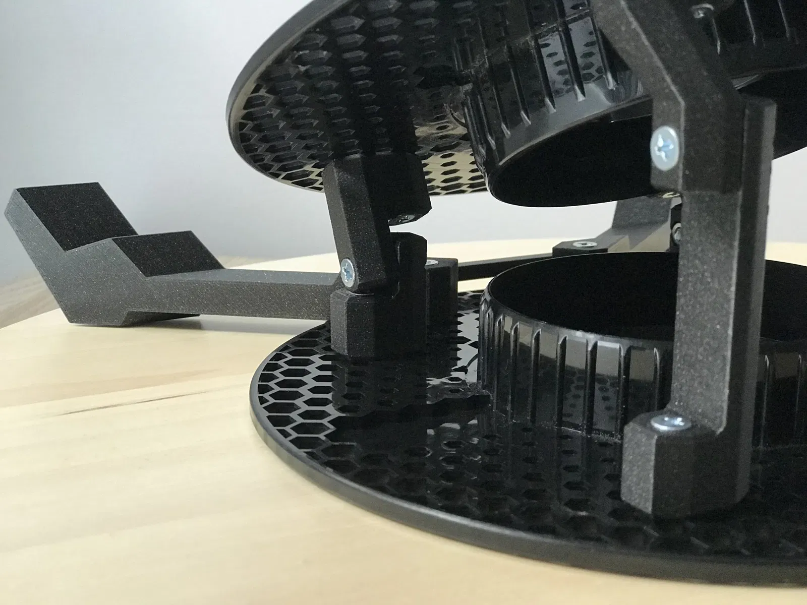 Lưới hình lục giác của các cuộn prusament rất dễ dàng để gắn một số bu lông và đai ốc vào đó. Tôi cần một giá đỡ laptop có thể giảm bớt cơn đau cổ do luôn phải nhìn xuống khi làm việc trên đó, vì vậy chỉ cần một vài bộ phận, đai ốc và bu lông, và tôi đã hoàn thành khá dễ dàng!