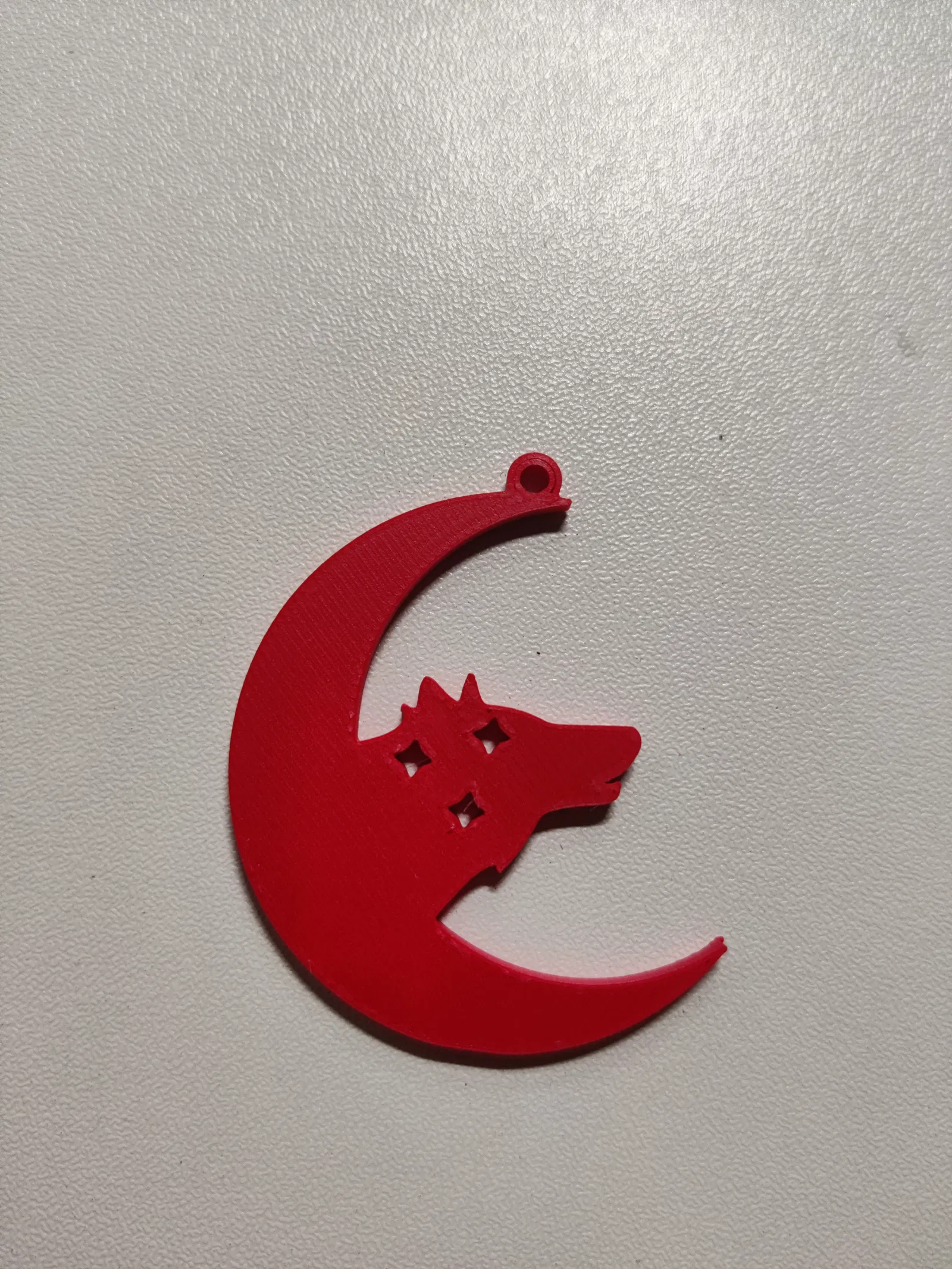Mặt dây chuyền đơn giản với hình nửa vầng trăng và một con sói. In bằng máy Bambulab X1C với độ cao lớp 0.16mm, 3 lớp tường và in đặc ruột. Có hai phiên bản, bản dày dễ in hơn với đầu phun 0.4mm.