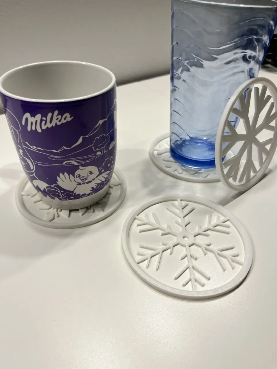 Đế lót ly xinh xắn cho mùa Giáng Sinh, dày 2mm chống thấm nước tốt, tha hồ để ly cà phê, trà hay bất kỳ thức uống nào. In bằng PLA White với 15% Infill trên máy Bambu Lab P1S.