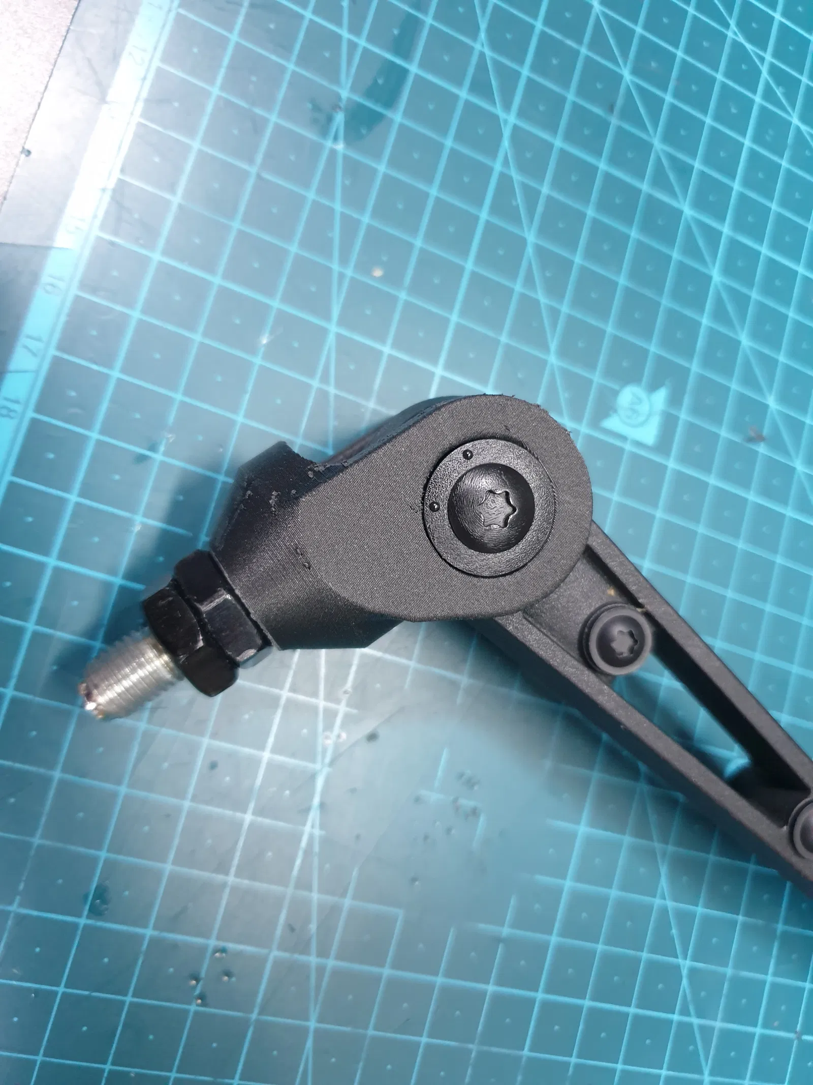 Phần đế dễ bị gãy khi gương bị rơi xuống đất. Đây là bộ phận cần phải thay thế. Chỉ là cái đế gắn cho gương gập Touratech thôi. Tui có in thử bằng PA-CF rồi mà hình như nó hơi cứng. Cái món này là để nó gãy khi có cố xảy ra đó, nên chắc PETG xài cũng ngon lành à.