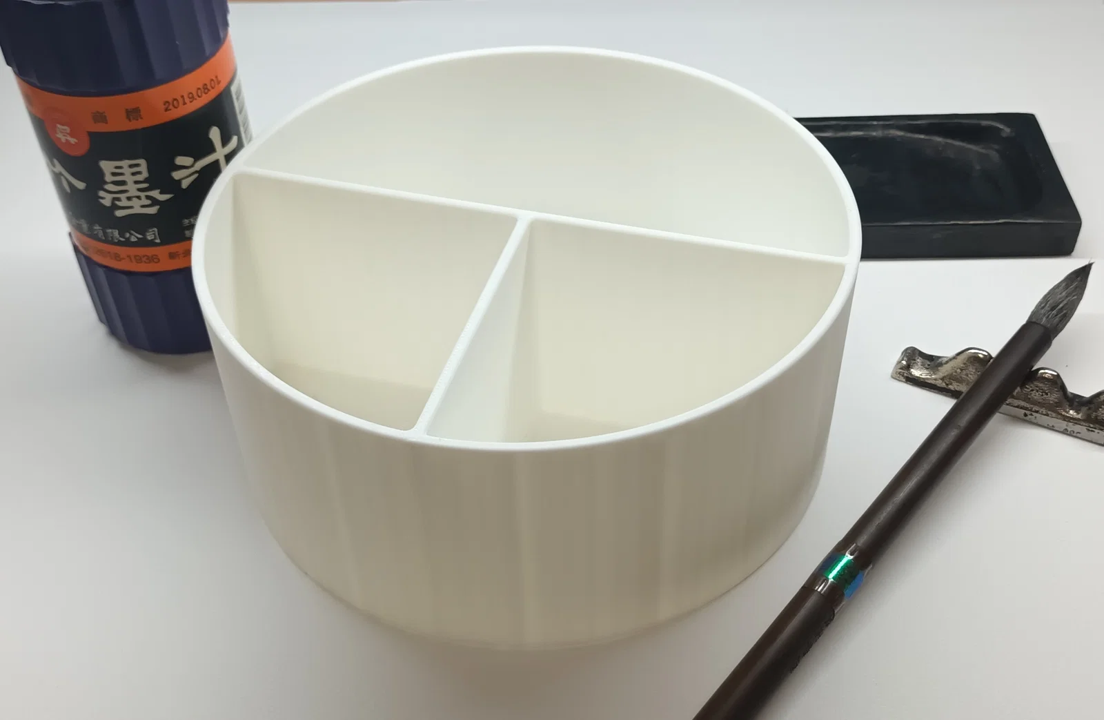 Khay rửa cọ vẽ chuyên dụng cho tranh thủy mặc, được thiết kế với ba ngăn tiện lợi. Kích thước đường kính 170mm, cao 73mm, dày 3mm. Sản phẩm này là một vật dụng hữu ích cho các bạn học sinh, sinh viên hoặc những người yêu thích nghệ thuật thư pháp và hội họa Trung Hoa.