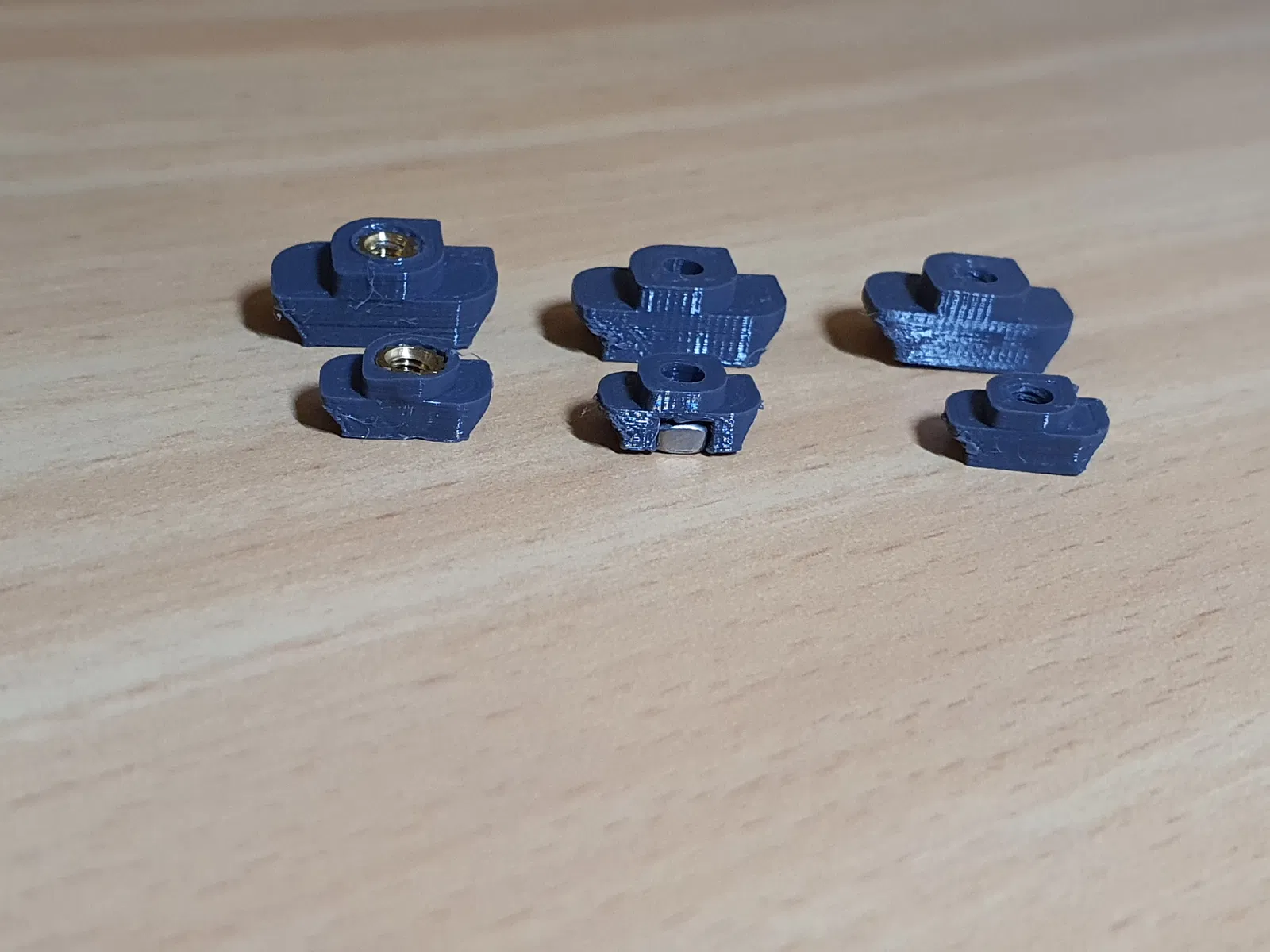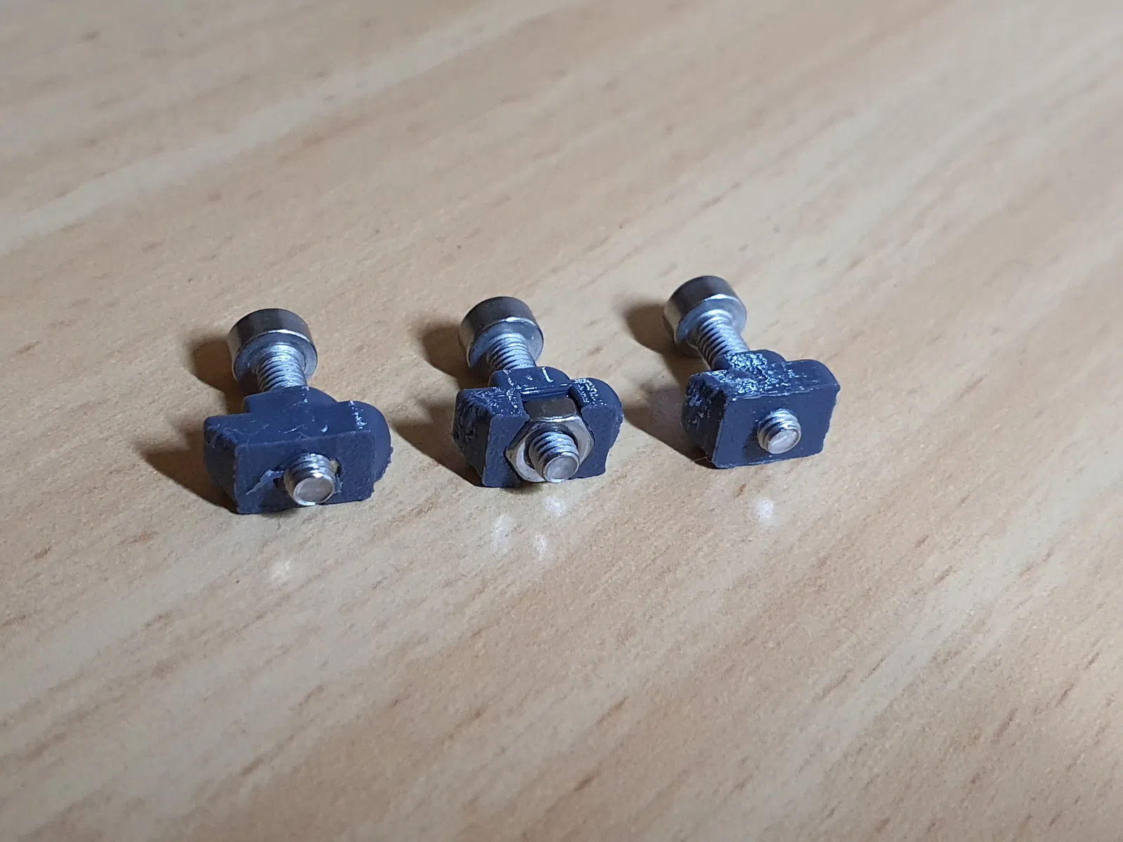 Các biến thể ốc lục giác được thiết kế theo cách không yêu cầu bất kỳ giá đỡ nào khi in ở độ cao lớp 0.1mm. Khi sử dụng giá đỡ, hãy lưu ý rằng việc tháo gỡ sẽ khá khó khăn do hình dạng mặt dưới của lỗ ốc lục giác. Các ốc được thiết kế để ép chặt vào nhựa. Nếu không đủ chắc chắn với bạn, hãy cân nhắc sử dụng một giọt keo nhỏ để giữ chúng lại.