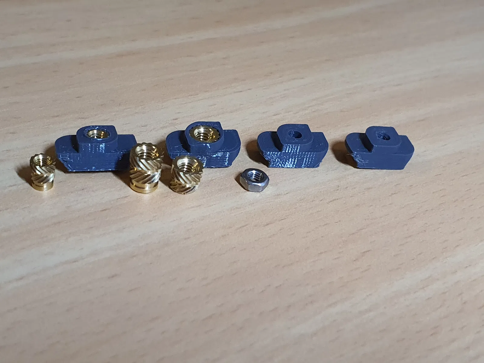 Bộ ốc Hammernut và T-nut 2020, 3030 dễ in, có 3 loại: Ốc chèn nhiệt, Ốc lục giác và Ốc vặn. Chọn loại phù hợp với vật liệu và kích thước. Khuyến khích dùng ốc chèn nhiệt. Lưu ý kích thước lỗ và độ dài ốc.