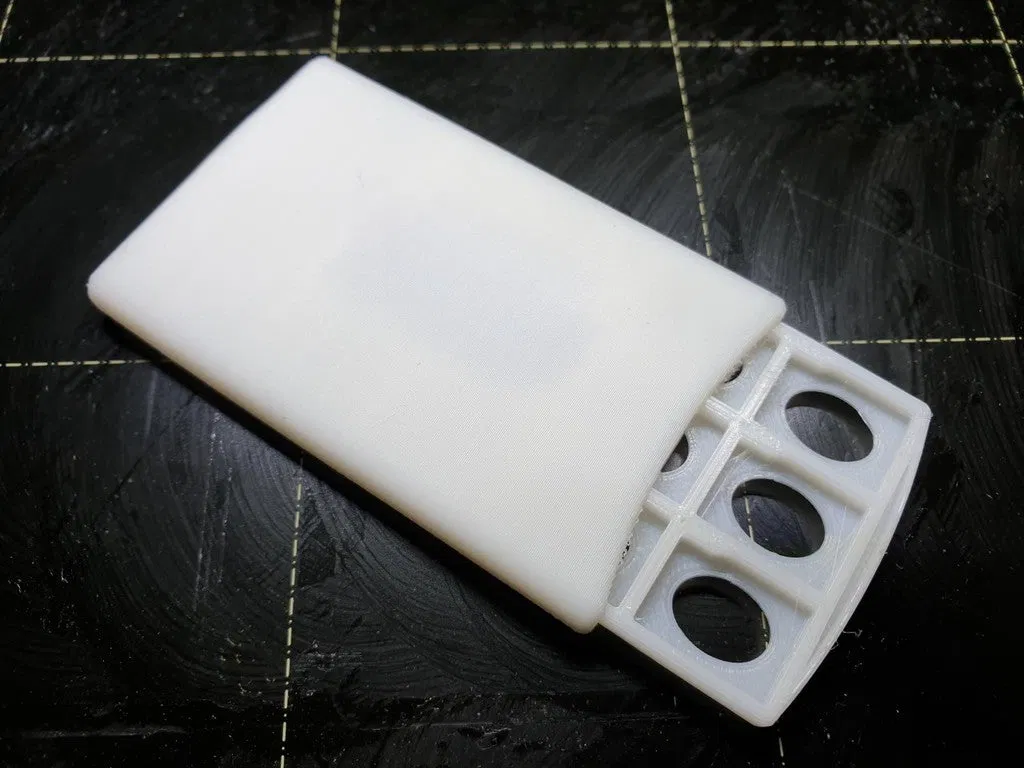 Các khay cũng không cần brims, nhưng vẫn nên dùng keo để đề phòng. Các khay không bị cong vênh ở các góc, vì các lỗ bên trong giúp giảm thiểu 'lực kéo' do co ngót, miễn là có một số phương pháp bám dính bàn in.