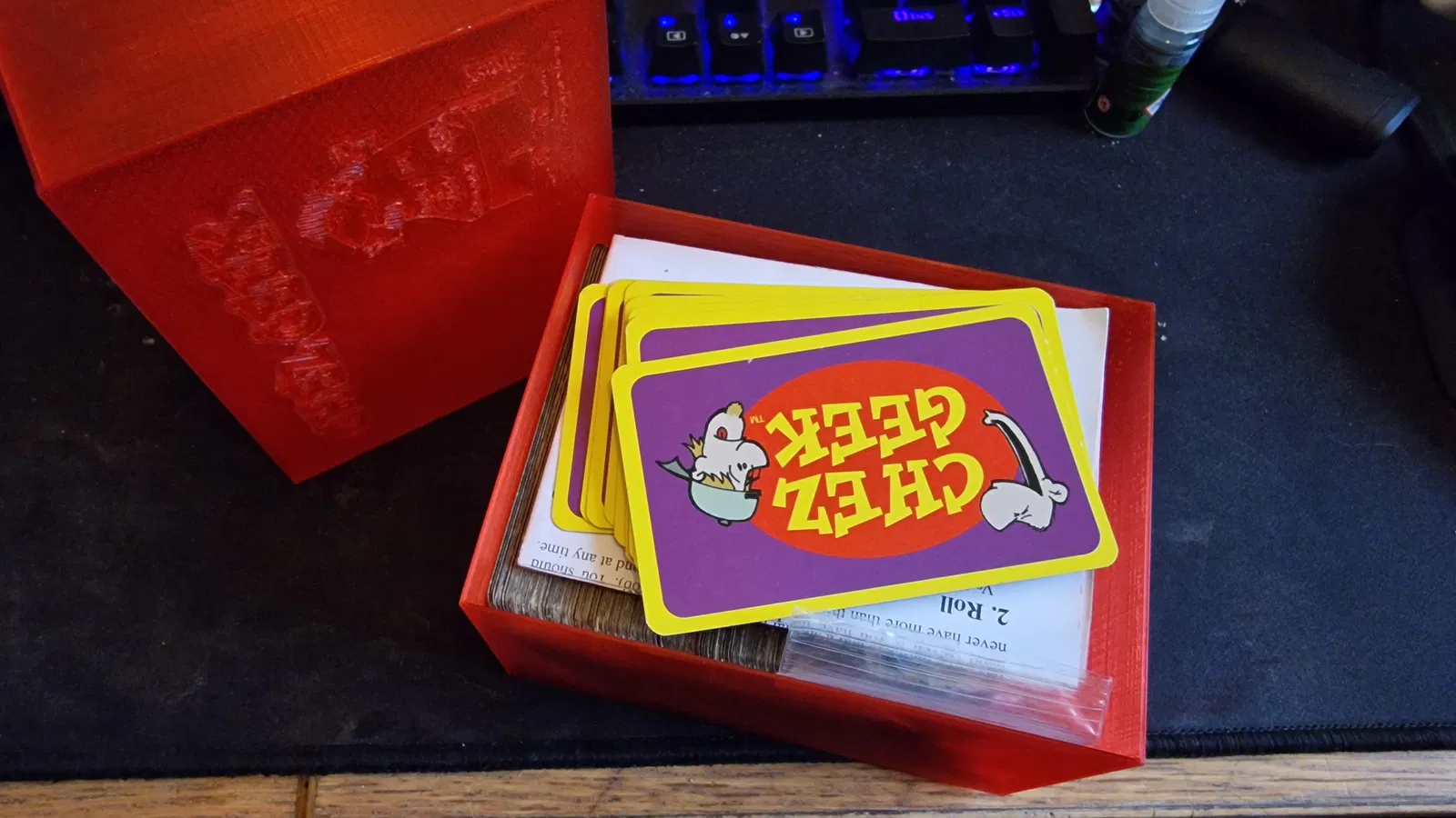 Hộp đủ bự để chứa các bản mở rộng Chez Geek tới số 3, cùng với xúc xắc và điểm số. Kích thước y chang hộp Block Party.