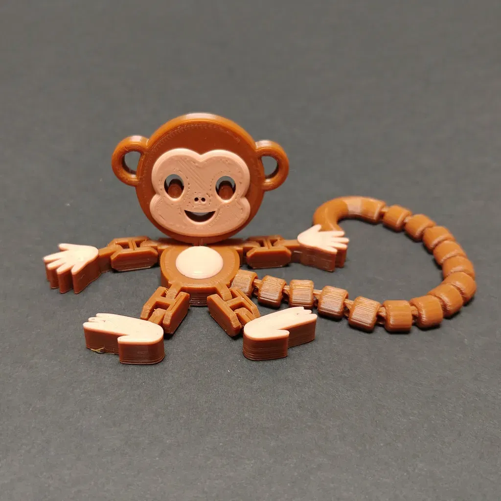 Cháu gái và cháu trai của tôi rất thích những con vật linh hoạt, nhưng chúng tôi không thể tìm thấy một con khỉ tốt, vì vậy tôi đã thiết kế một con cho chúng. Đó là một con khỉ vui vẻ với cánh tay, chân và cổ linh hoạt. Nó cũng có một cái đuôi siêu linh hoạt mà nó có thể sử dụng để đu hoặc bám vào các vật khác.