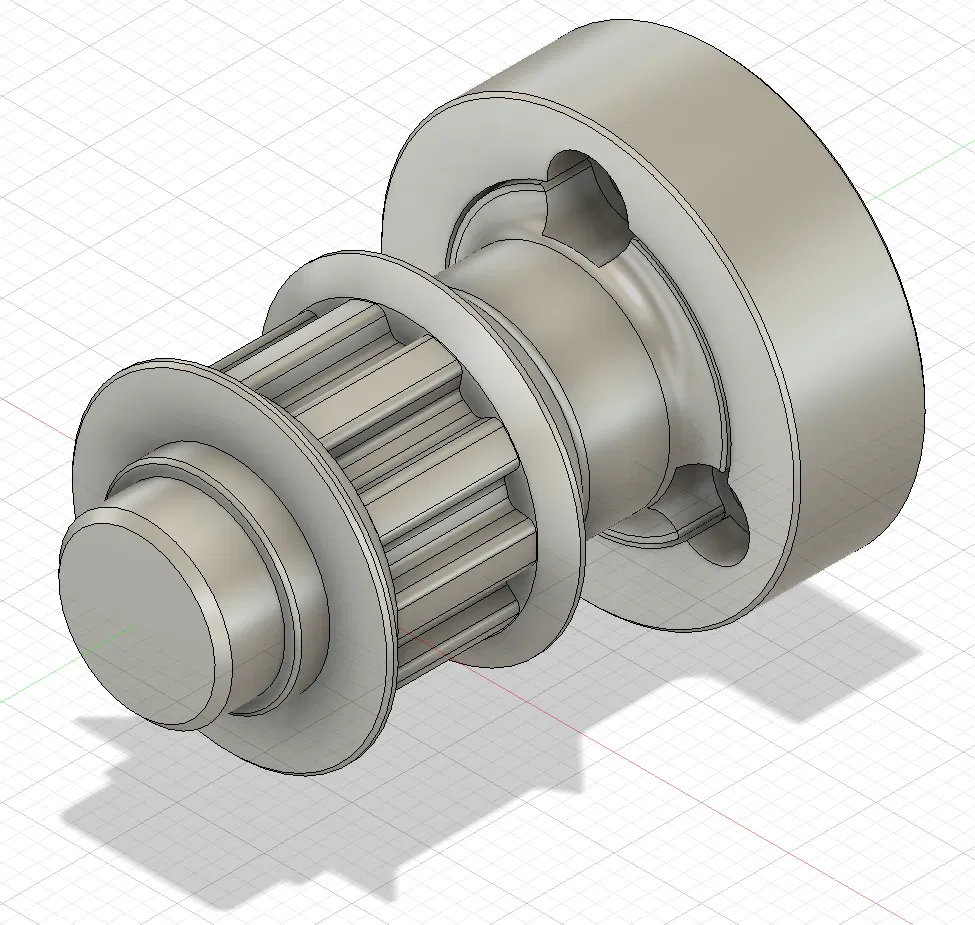Bộ puli motor gồm 2 phần để giúp xe chạy êm hơn. File Fusion 360 cũng được cung cấp kèm theo phòng trường hợp bạn muốn chỉnh sửa.