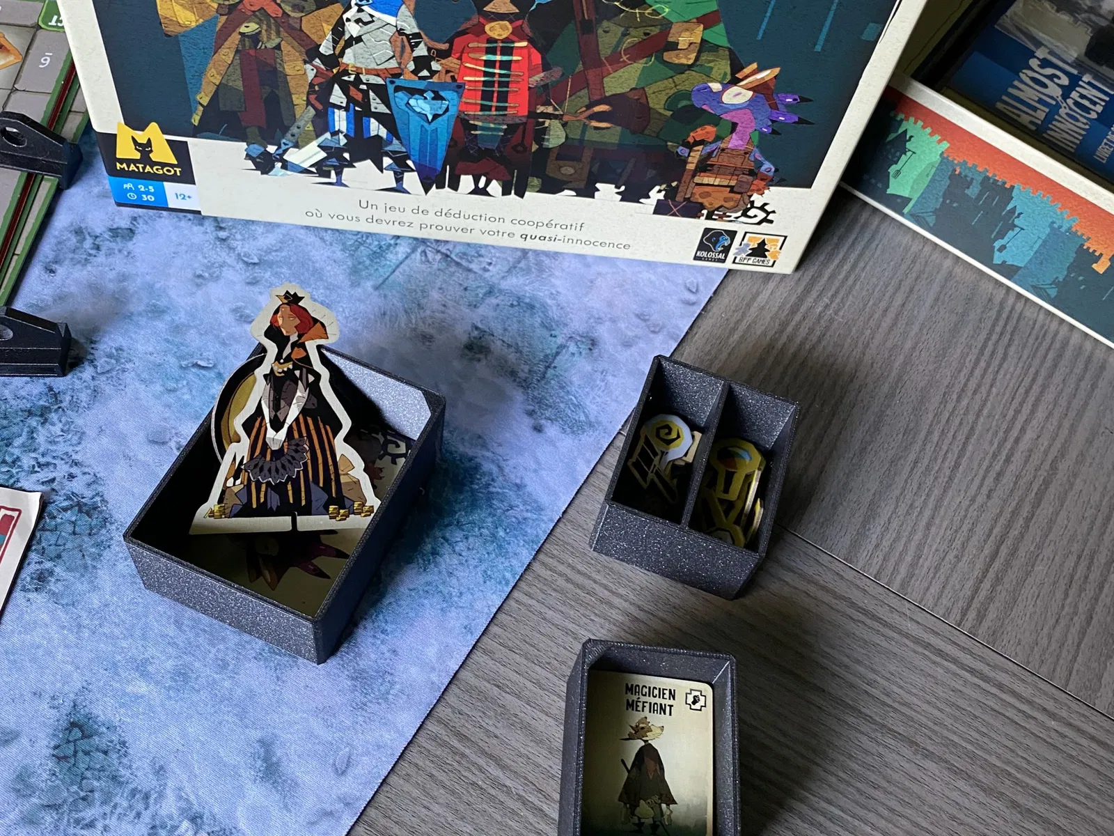 Petit insert cho trò chơi almost innocent. Giá đựng thẻ nhỏ có một bộ phận phân chia cho các thẻ đặc biệt và những thẻ không sử dụng trong các kịch bản đầu tiên. (thẻ thứ bảy của mỗi loại.