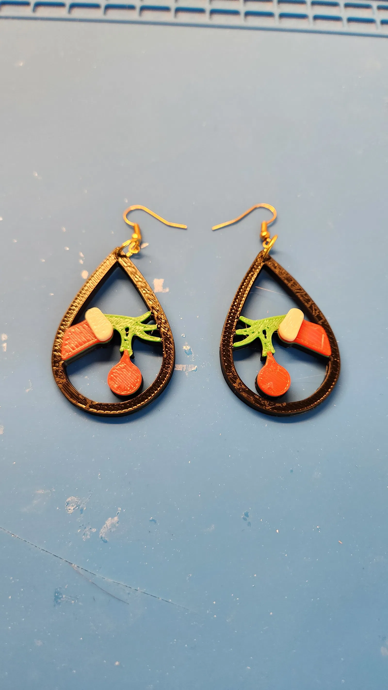 Không kiếm đâu ra mô hình 3D bông tai Grinch nên tui tự làm luôn! In màu lá, đỏ, trắng với độ cao lớp 0.3mm. Hàng này bán đầy mà tui thích tự in, chỉ dùng cho cá nhân thôi nha.