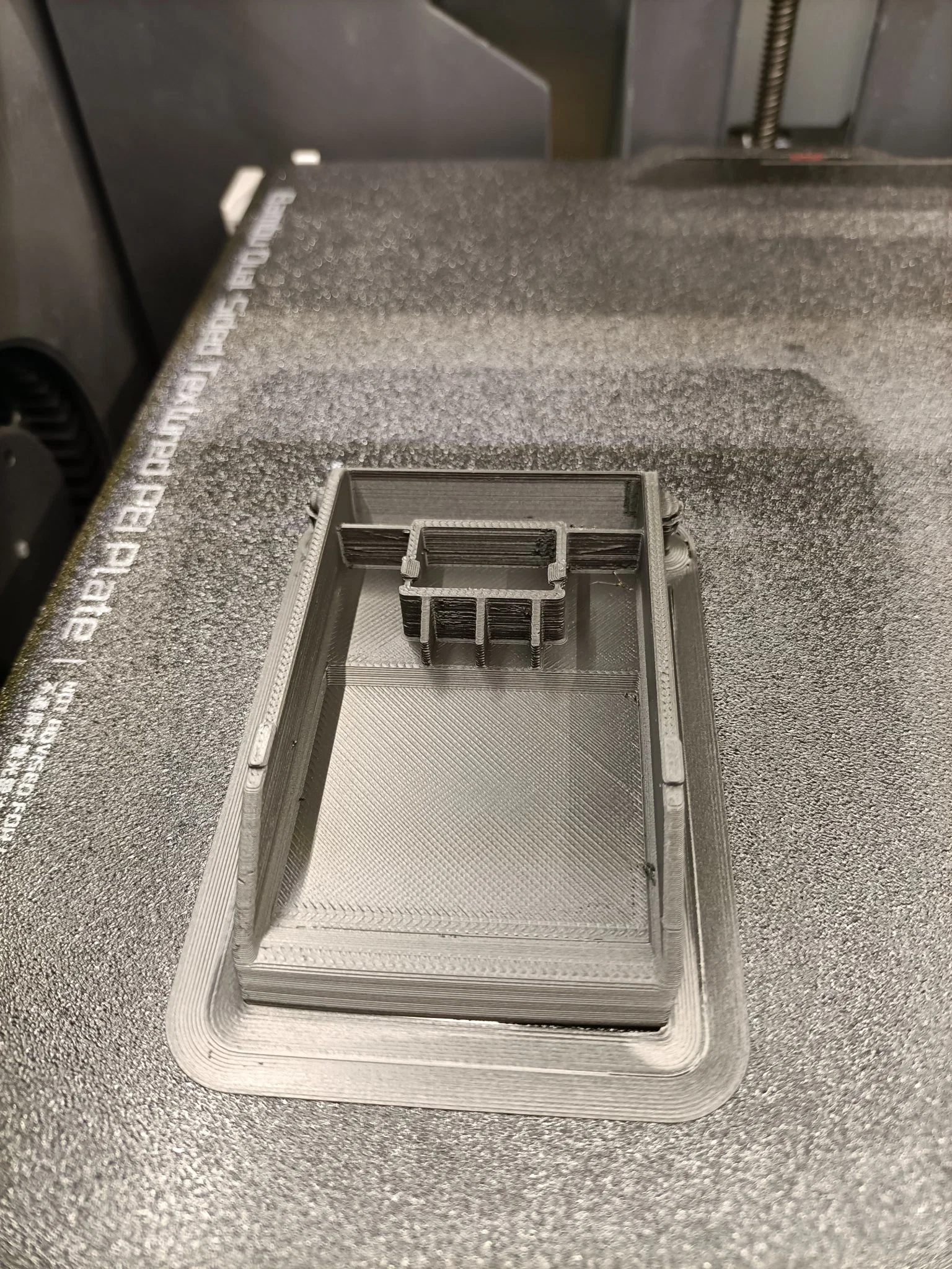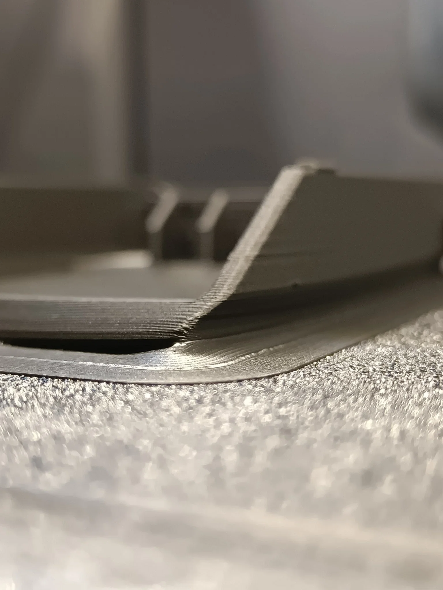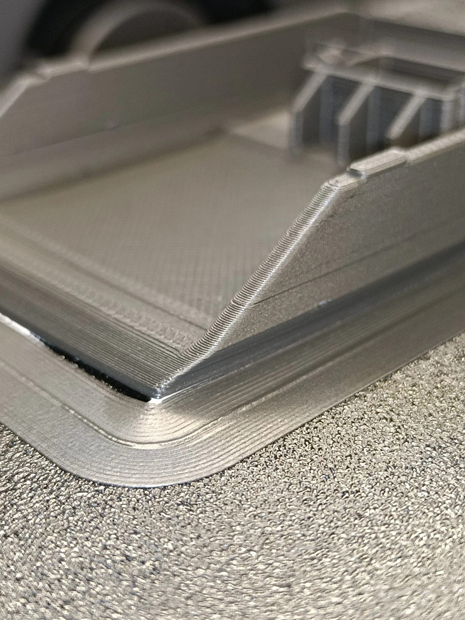 In trên BambuLabs X1C với nhiệt độ bàn in 100°C và viền 15mm ở tốc độ RẤT chậm (<50mm/sec; 2.3mm3/s); tấm PEI có kết cấu với keo Magicoo PP.