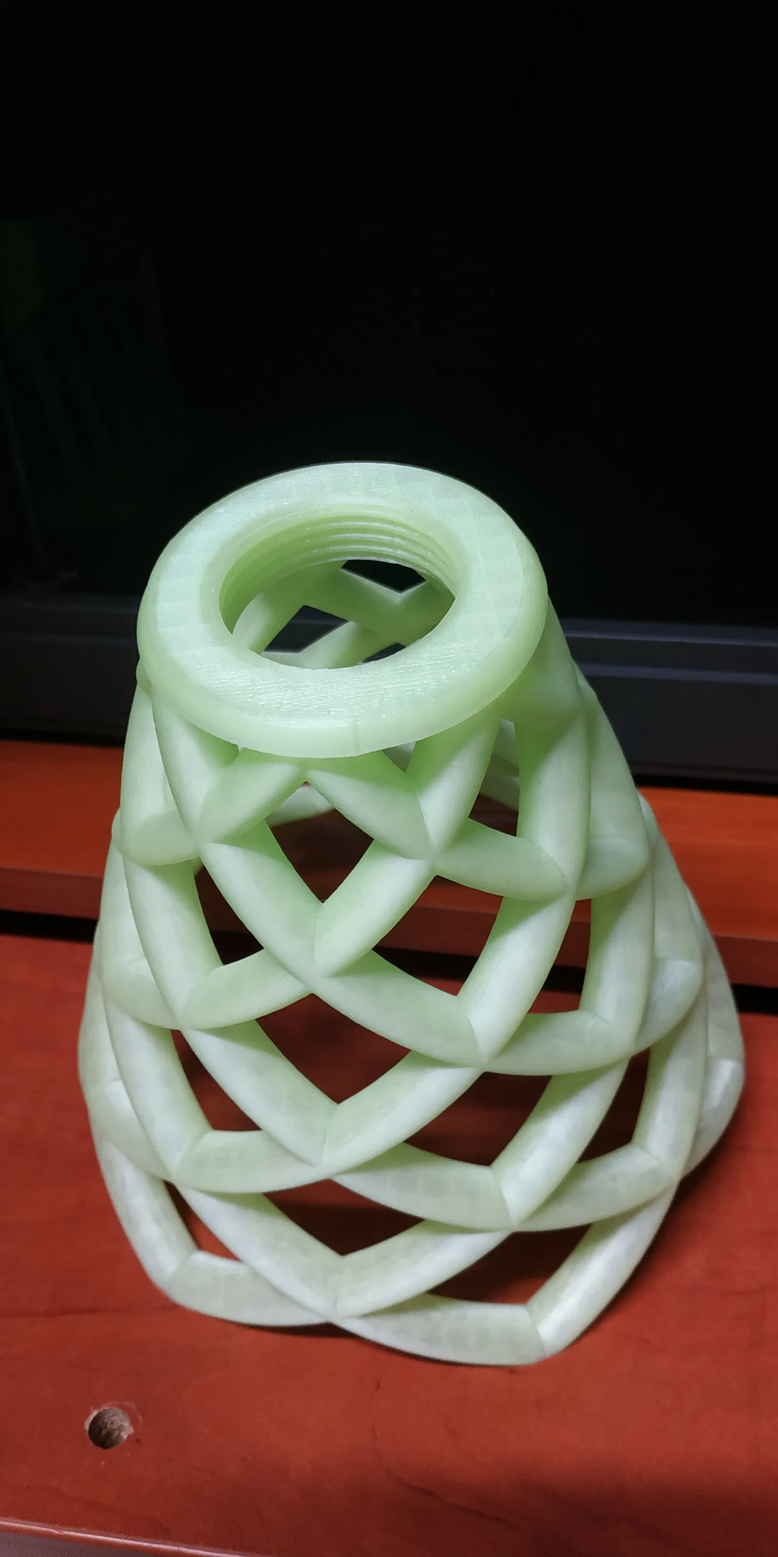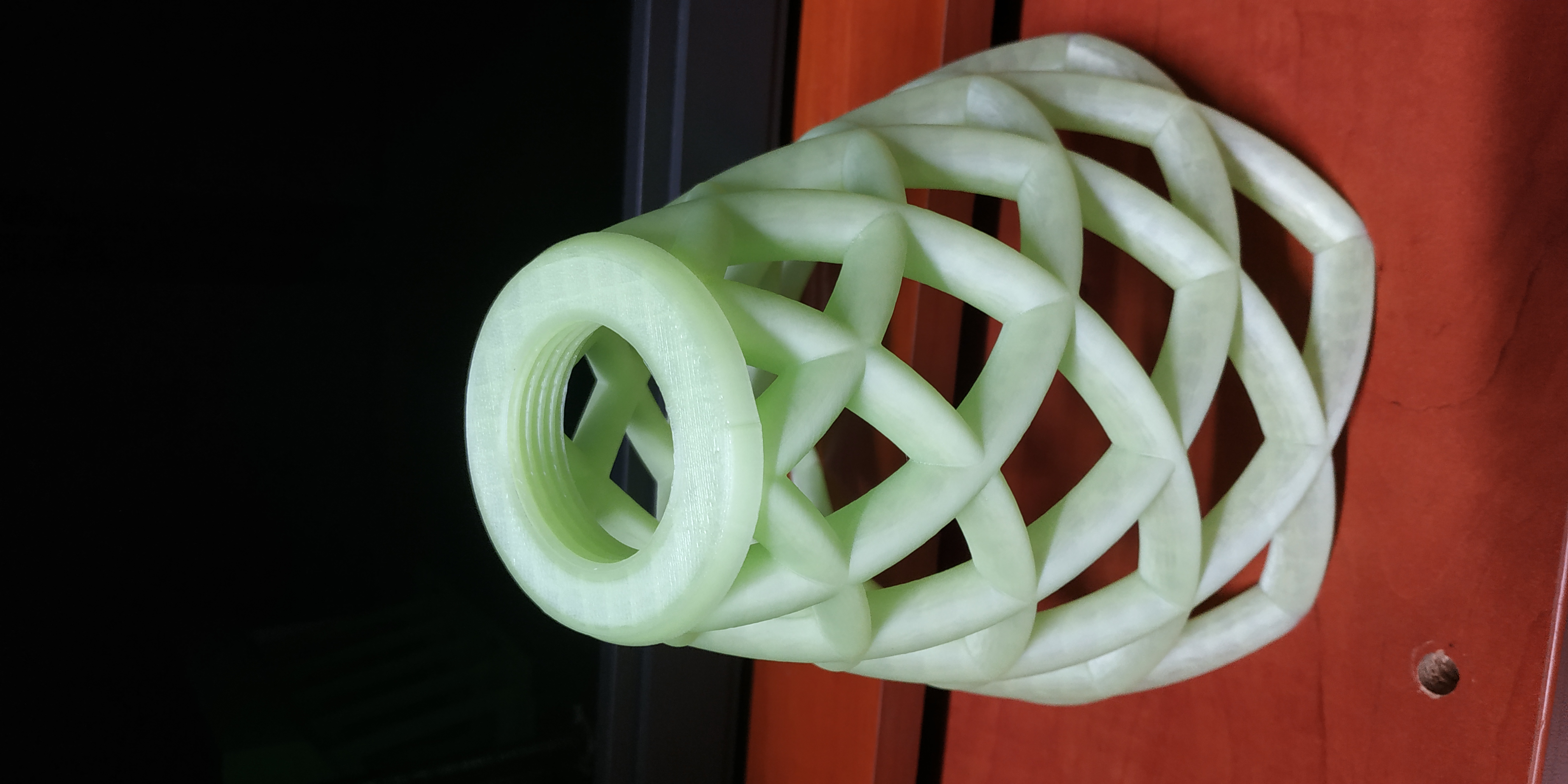 Cái đế này là dành cho đèn Lithophane, có ren xoắn để gắn đui đèn. Trong tương lai, tui sẽ làm thêm cái đế có ren E14 nữa nha.