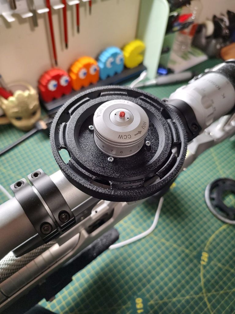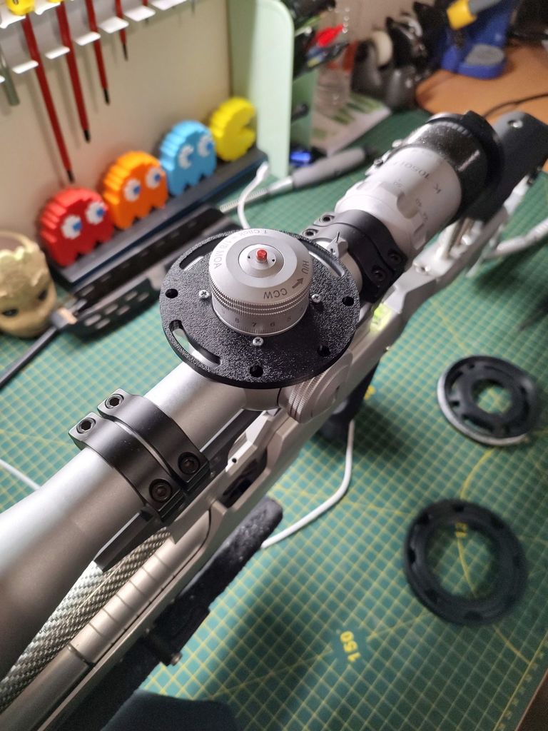 Bánh xe dịch tiêu cự từ tính đường kính 95mm, gắn được bằng nam châm cho Kahles K1050i FT. Bạn sẽ cần 10 viên nam châm Neodymium đường kính 5mm, cao 3mm. Có thể chỉ cần 6 hoặc 8 viên là đủ chắc chắn.