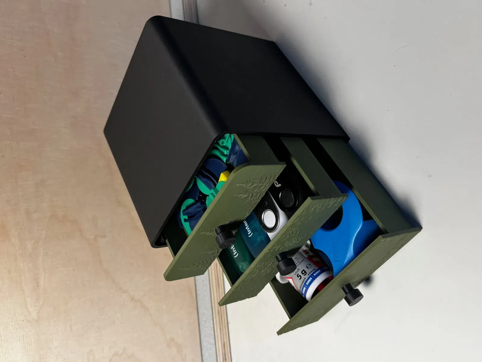 Tủ nhỏ với ngăn kéo được trang trí với mô hình cây. 3 x m3x8mm vít là bắt buộc. Kích thước là 100mm x 100mm x 100mm