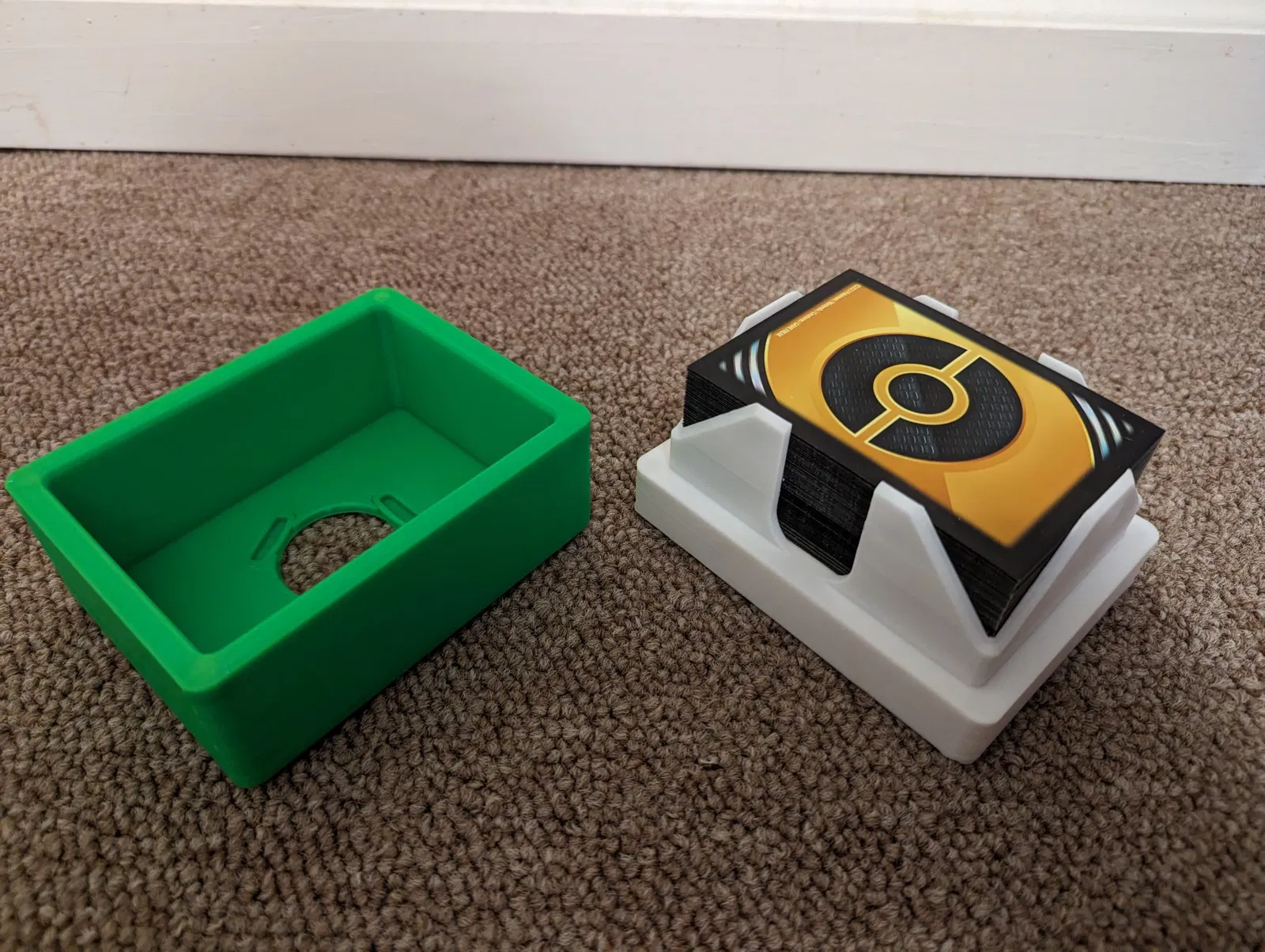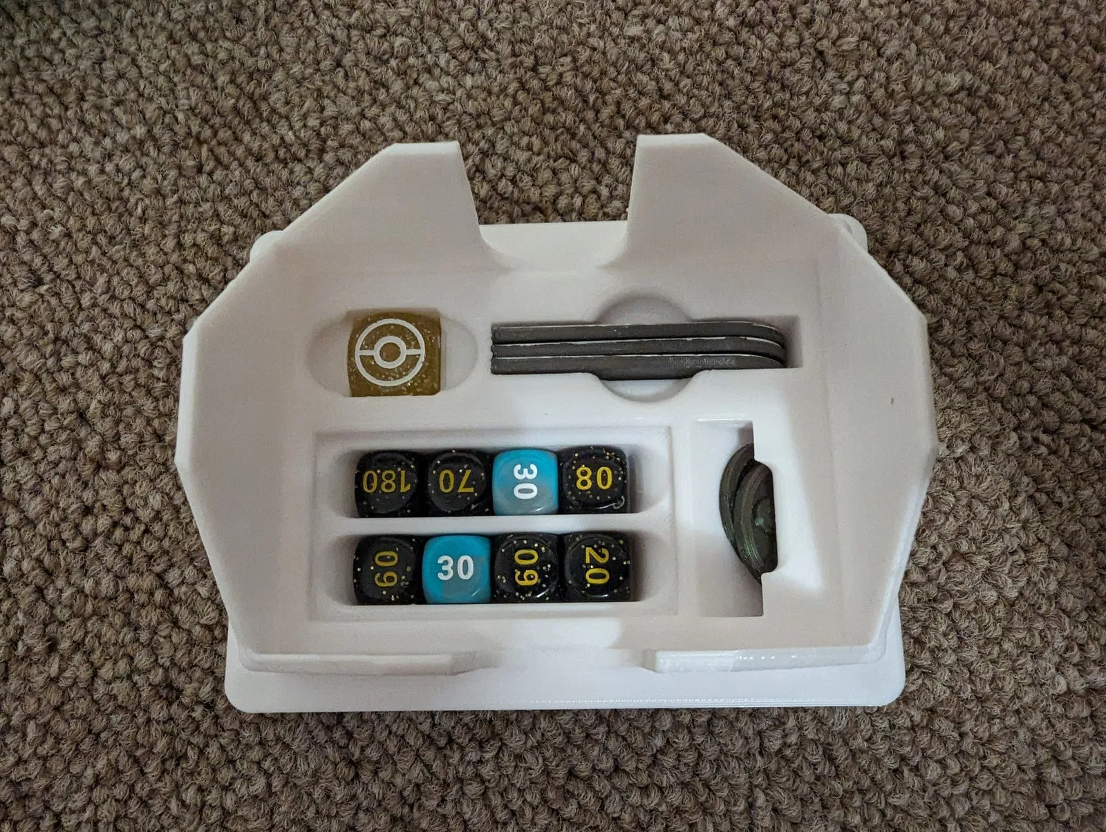 Remixed hai hộp bài để đáp ứng những gì tôi đang tìm kiếm. Hộp bài Pokemon TCG này có thể chứa một bộ bài 60 lá đã được bọc, 8 viên xúc xắc thiệt hại, 1 viên xúc xắc “lật đồng xu” tiêu chuẩn, 1 đồng xu độc và đồng xu cháy (từ đây và đặt ở 120% sẽ không vừa với những cái đến từ Elite Trainer Boxes), 3 dấu hiệu sử dụng khả năng, và một dấu hiệu Vstar. Cũng có một chỗ ở trên cùng để đặt một đồng xu Pokemon.