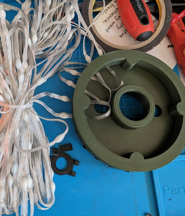 Đây là bộ sưu tập các bộ phận cho LED Megatree đang trong quá trình hoàn thiện của tôi. Ban đầu, tôi đăng phiên bản 32/16 dây, tôi cũng có một phiên bản cho 24 dây. Nó bao gồm 2 mảnh ghép với nhau chặt chẽ để giữ các dây cáp điện chắc chắn. Tôi đã sử dụng vít M3x12, nhưng mục đích chỉ là để kẹp chặt 2 mảnh này lại với nhau. Xin lưu ý rằng tôi đã sử dụng băng VHB dưới mỗi dây cáp để chúng không bị trượt, điều này thực sự có độ bám dính tốt hơn tôi nghĩ. Sau đó, có một bộ vỏ 2 mảnh (do hình dạng in) được dán lại với nhau, chống thấm nước và cho phép gắn ngôi sao lên trên. 2 lỗ ở hai bên giữ vòng ngoài vào các bộ phận trước đó giữ các dây cáp. Một cây cột đỡ cái này lên không trung, tôi đã sử dụng cây sào vớt rác hồ bơi vì nó rẻ, nhẹ và có thể kéo dài. Sau đó, có 2 tùy chọn cho vòng dưới cùng, ban đầu tôi sử dụng các que kéo dây cáp bằng sợi thủy tinh, chúng ổn cho cây nhỏ nhưng quá mềm cho cây lớn (có lẽ đường kính trên 5'). Bây giờ tôi đang thử nghiệm với các cây cột lều bằng nhôm có thể thu vào. Tôi sẽ bổ sung ảnh và thông tin theo thời gian.