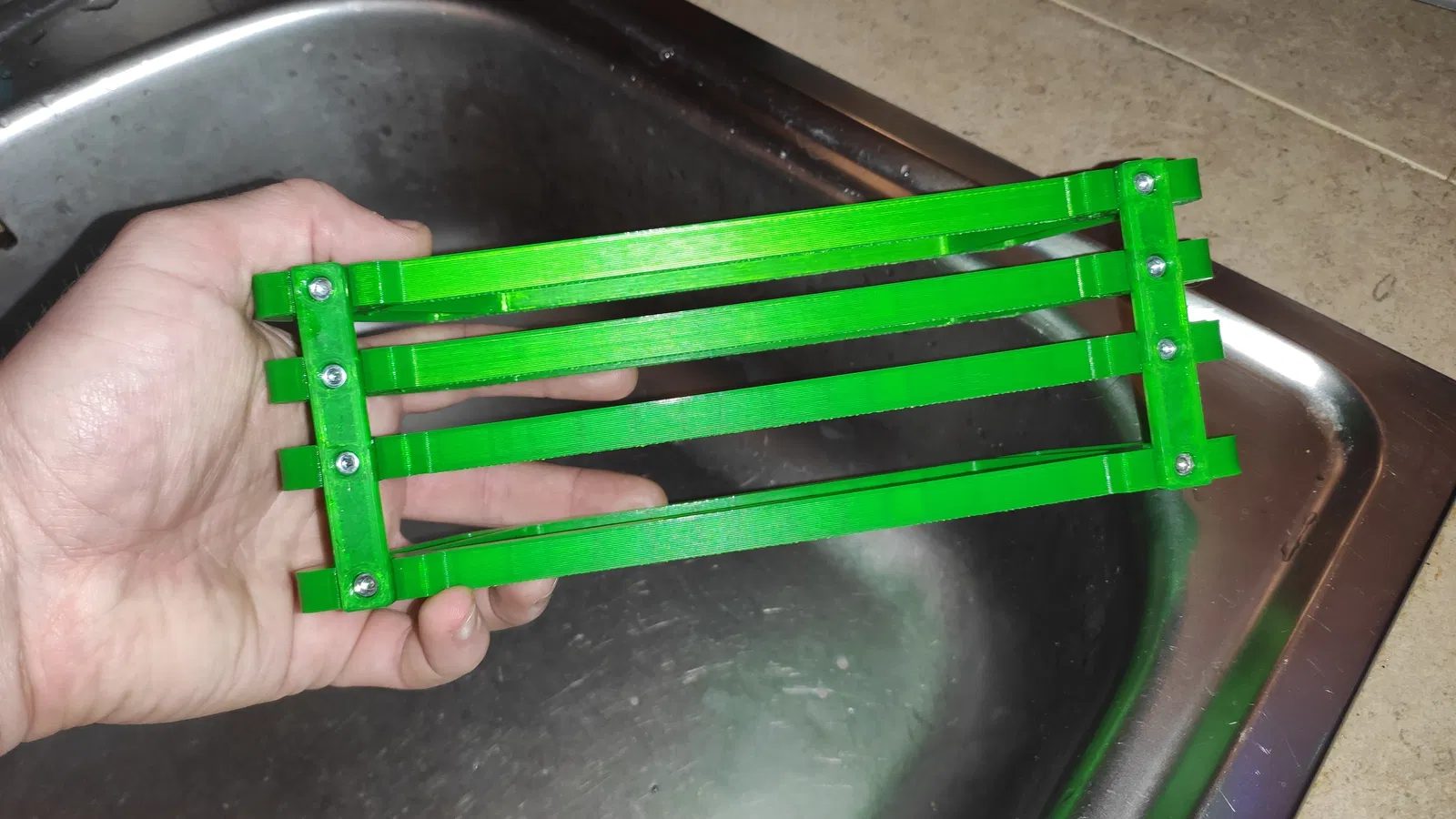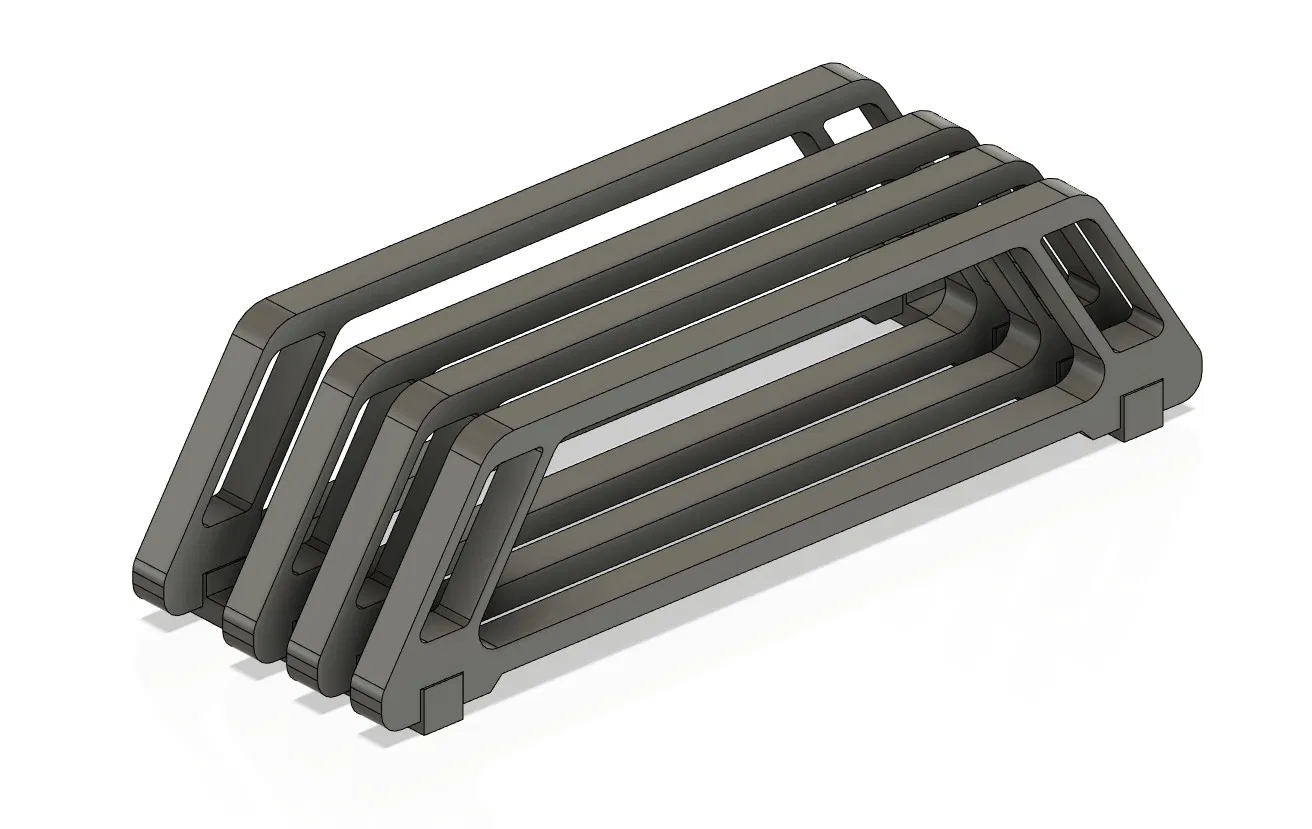 Mô hình giá đỡ thớt cho nhà bếp. Kích thước có trong ảnh. Khuyến nghị vật liệu PETG, không độc hại, không hút ẩm. Có thể tùy chỉnh cài đặt in. Cần 8 ốc M3x8 hoặc M3x10.