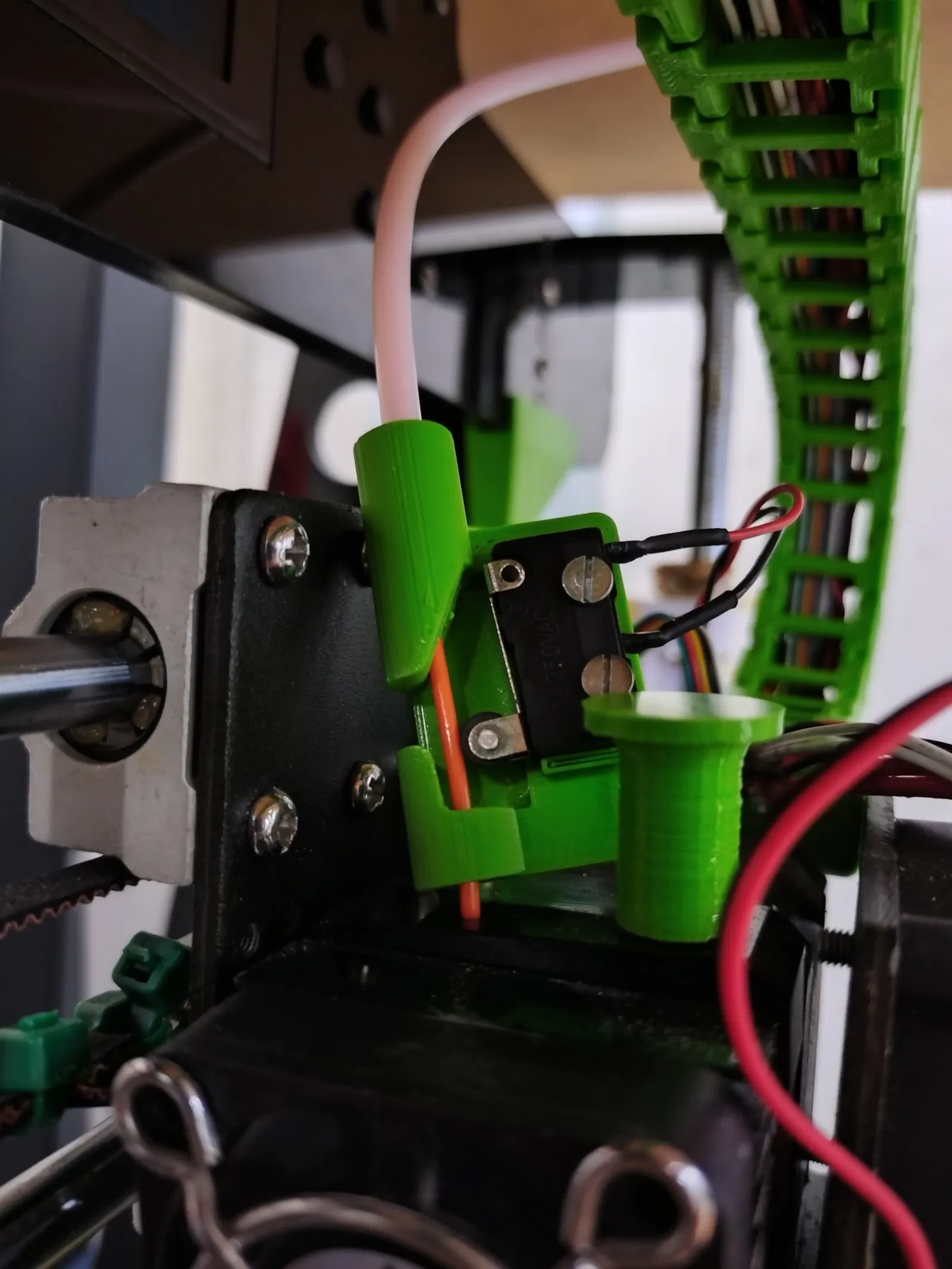 Cảm biến sợi nhựa có thể được kết nối với ống Bowden đi từ cuộn sợi nhựa và có một rãnh để gắn dây rút nếu cần.