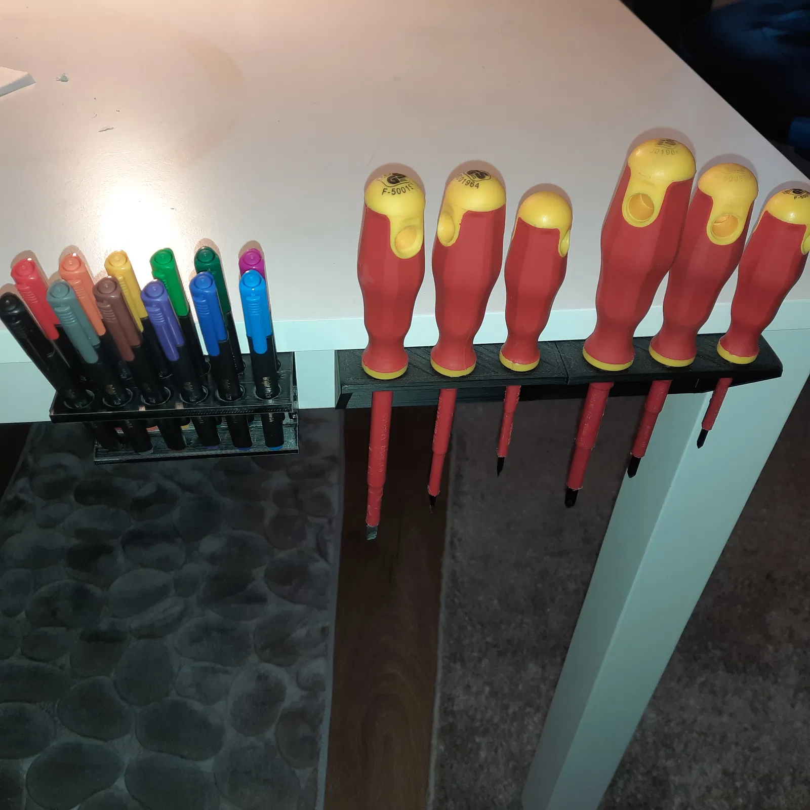 Giá đỡ bút chì và giá đỡ tuốc nơ vít, dễ dàng gắn vào cạnh bàn hoặc treo tường bằng ốc vít, giúp không gian làm việc của bạn gọn gàng hơn. Có nhiều kích cỡ lỗ cho các loại bút chì và tuốc nơ vít khác nhau.