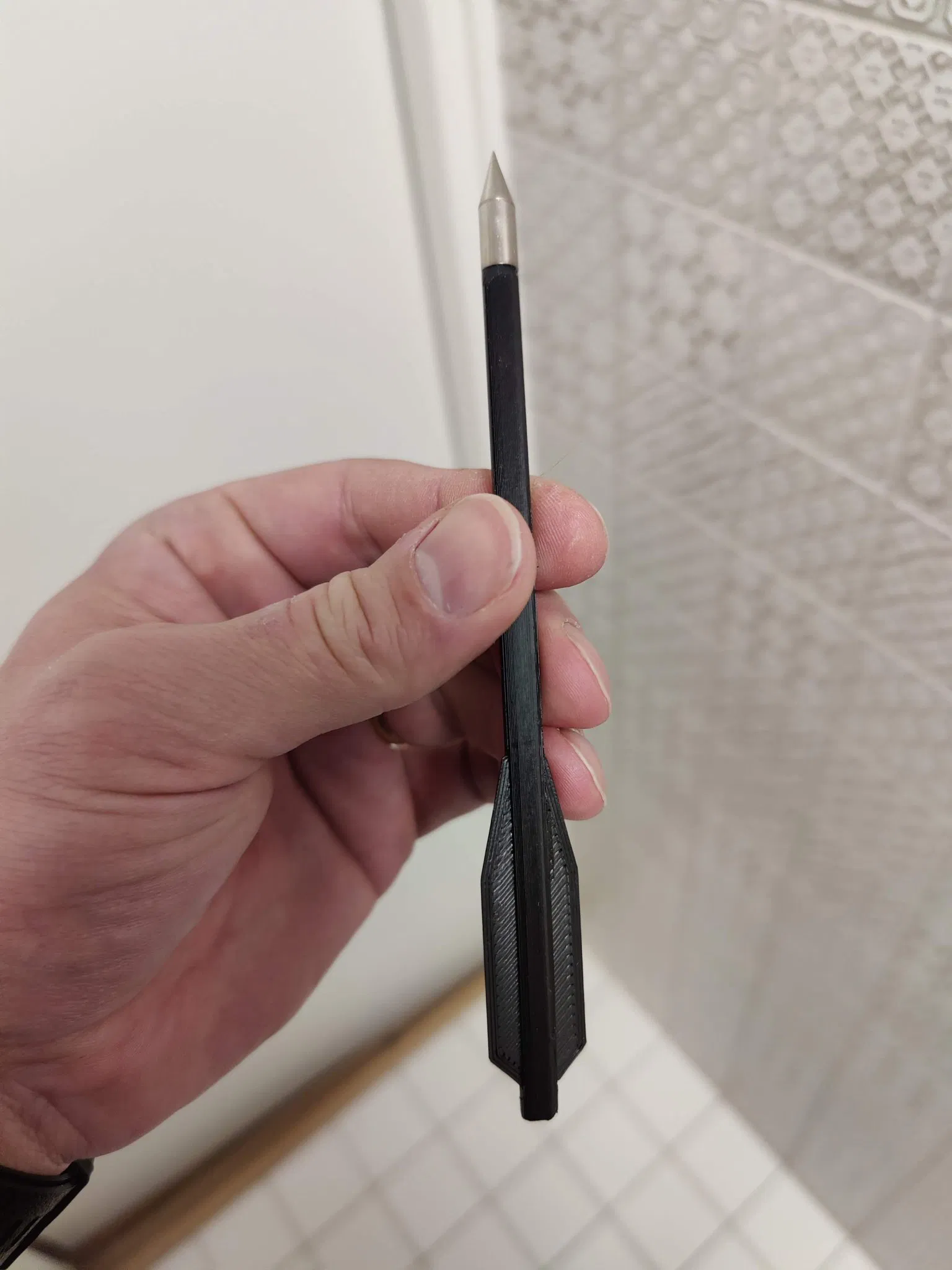 Tôi đã làm gãy mũi tên của mình. Đầu kim loại vẫn còn tốt nên tôi đã làm phần thân mũi tên thay thế này.