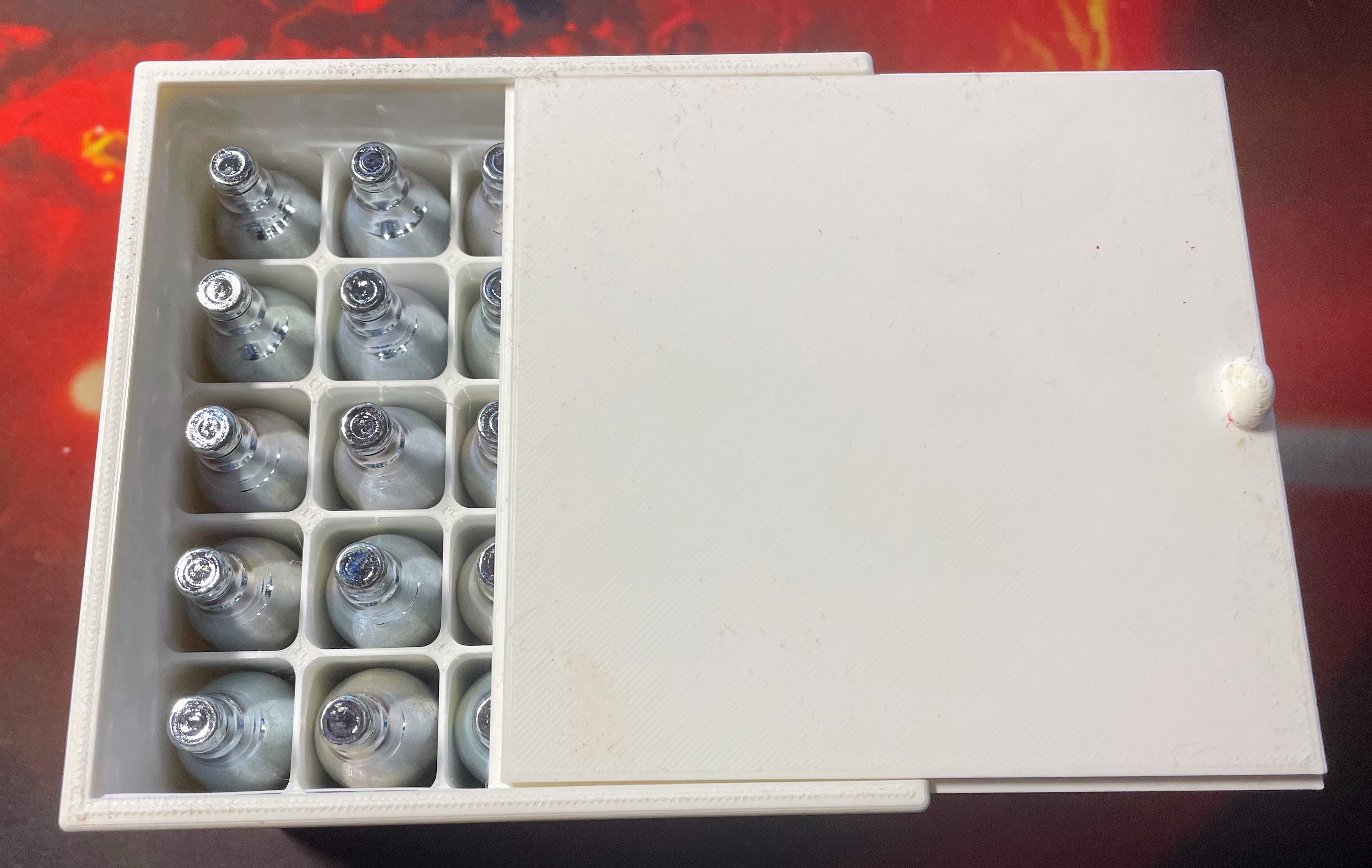 Hộp lớn có nắp, dùng để đựng 25 viên CO2 12mg, rất phù hợp cho loại CO2 dùng trong súng hơi (airgun).