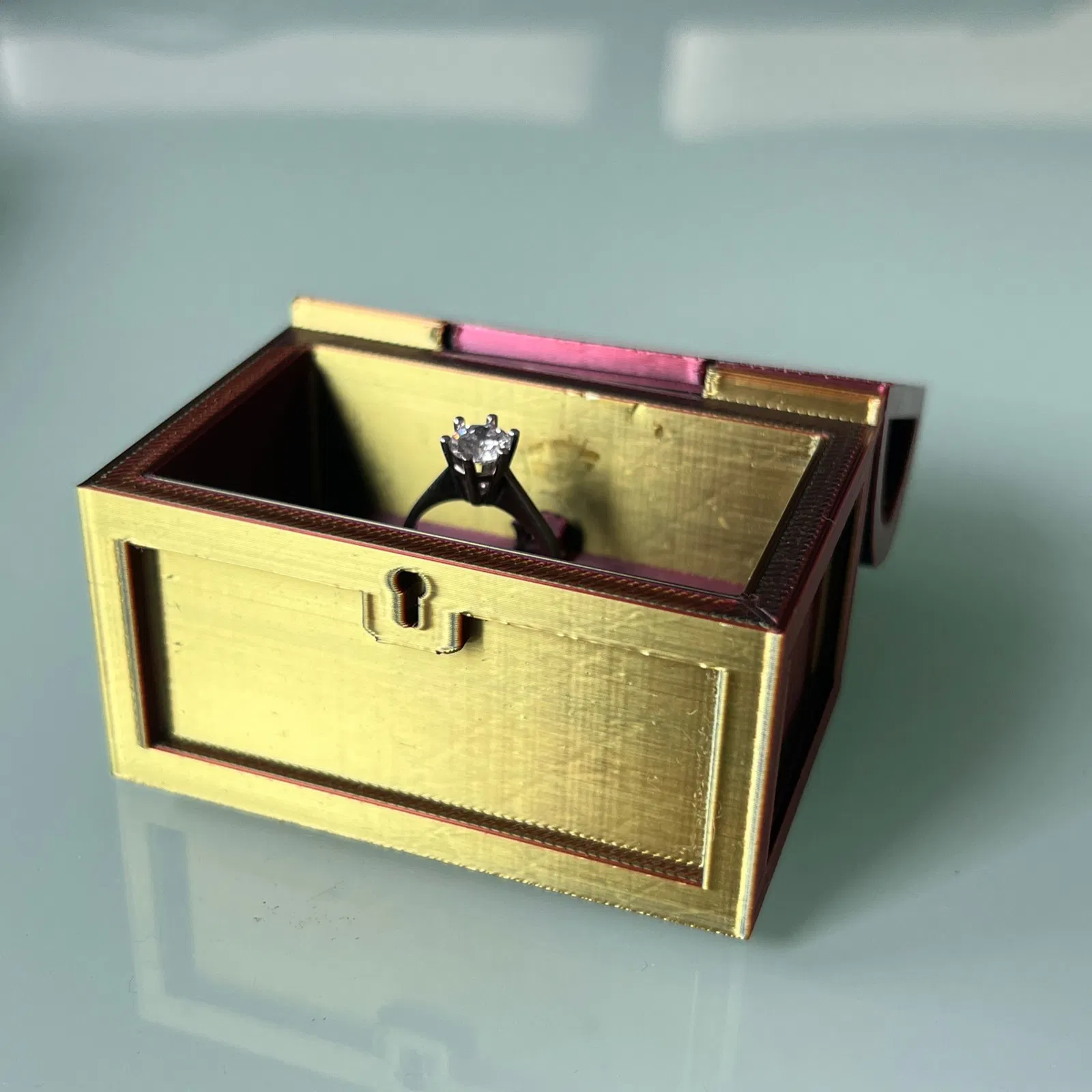 Một chiếc hòm cổ có bản lề, tùy chọn thêm khe cắm nhẫn, hoàn hảo để cất giữ những chiếc nhẫn quý giá của bạn. Hướng dẫn in ấn chi tiết về độ khít, support và các ghi chú khác để bạn có một sản phẩm ưng ý nhất.
