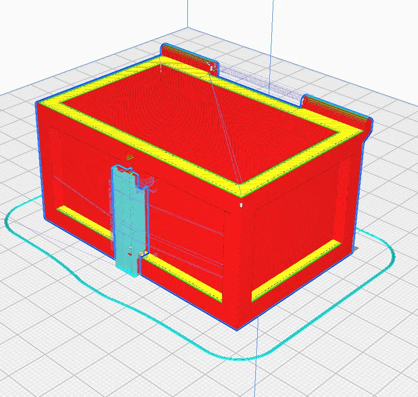 Phần nắp thì nếu anh em "cân" được mấy chỗ overhang thì không cần support đâu. Tuy nhiên, tui vẫn khuyên anh em nên dùng tree support như hình nha. Phần đáy thì anh em chỉ cần dùng custom support cho cái chỗ bỏ chìa vô thôi như hình (nhớ bật bridging nha), hoặc đơn giản là support hết mấy cái cạnh để nhìn cho nó "nuột".