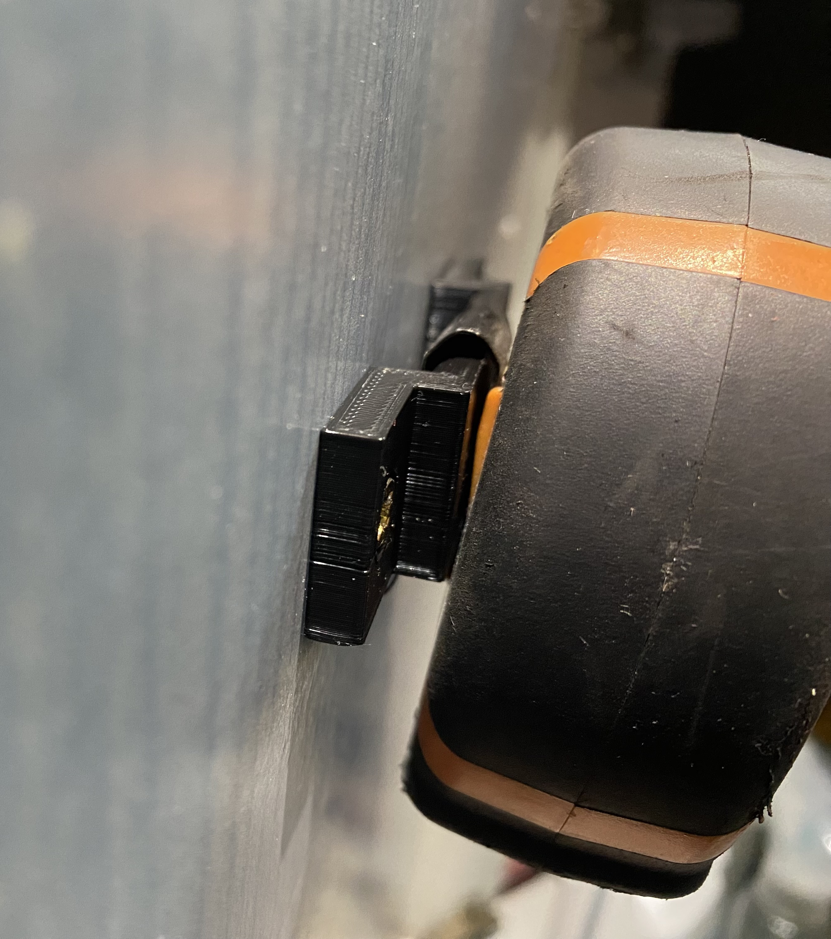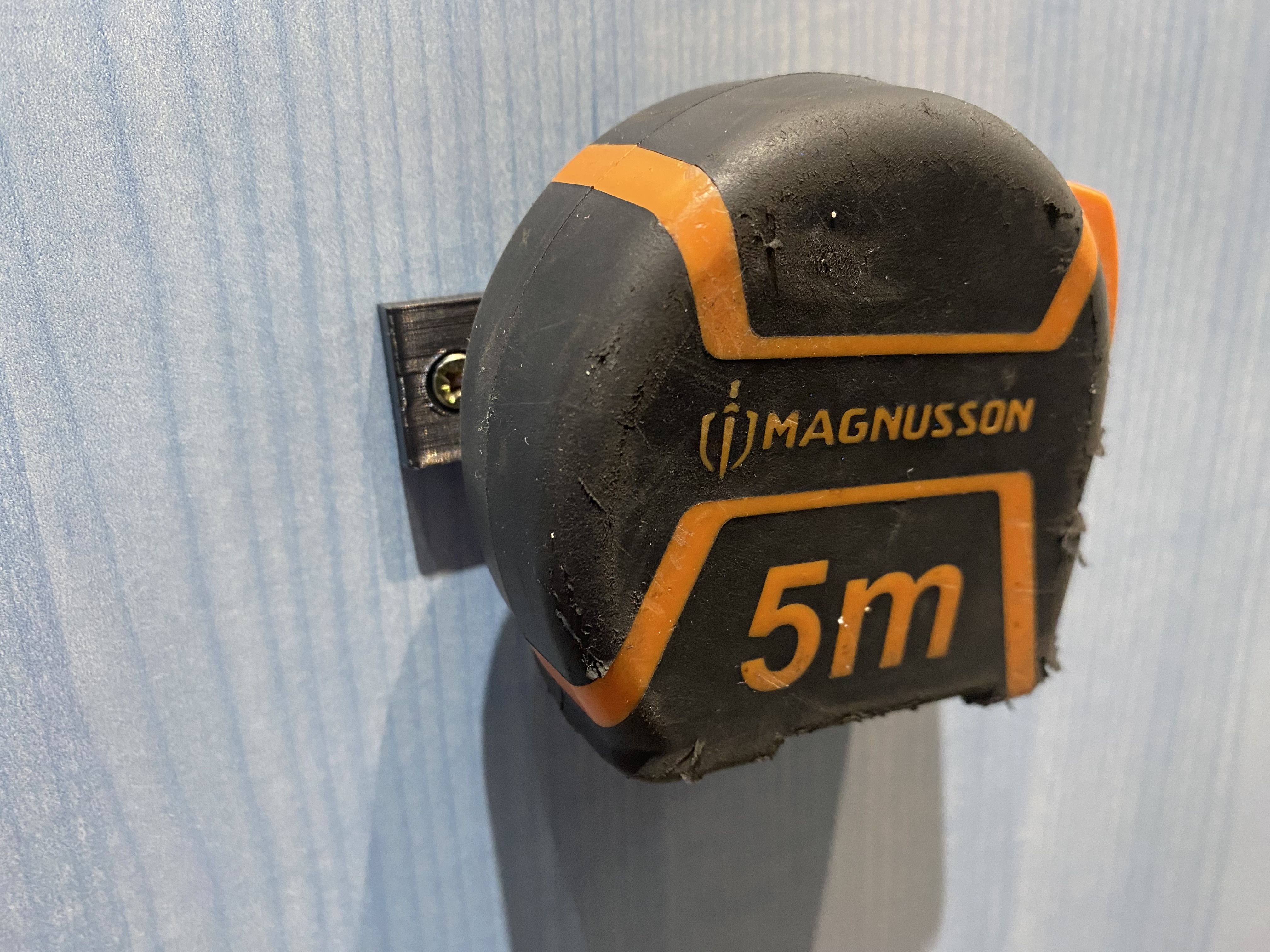 Giá treo thước dây gắn tường đơn giản, dễ in. Có lỗ 4mm cho vít chìm, thời gian in khoảng 40 phút với 10% infill. Phù hợp để giữ thước dây gọn gàng trên tường.