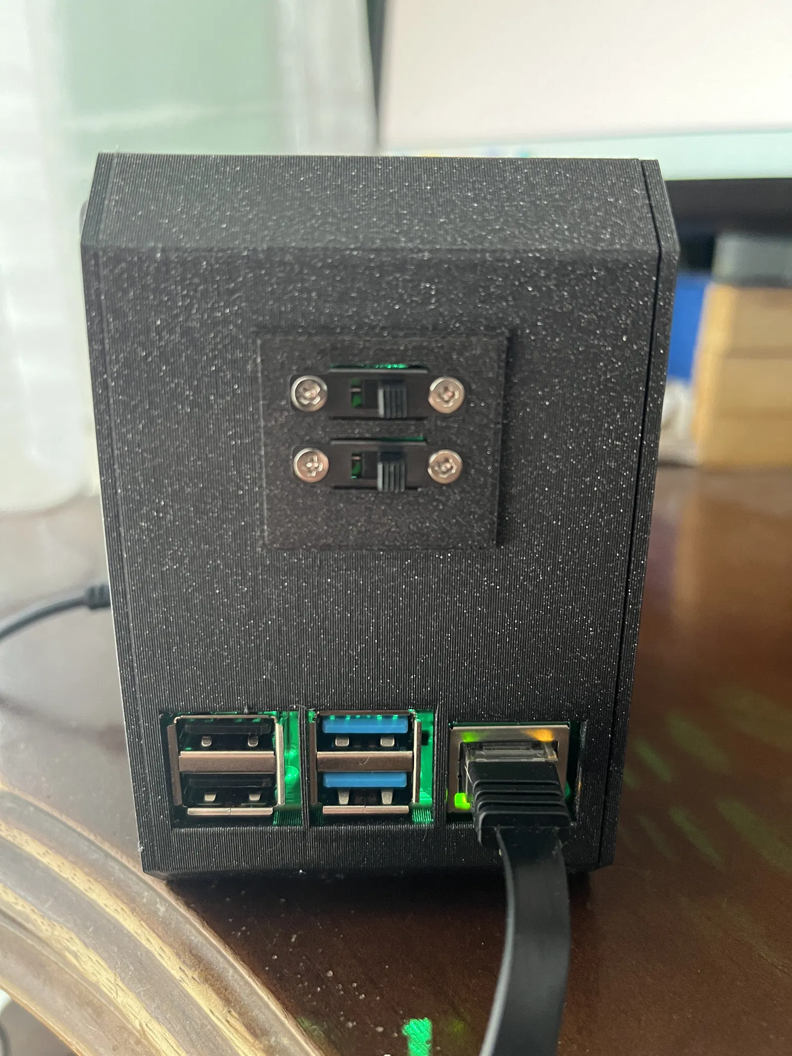 Hộp Raspberry Pi 4 có công tắc quạt và đèn LED