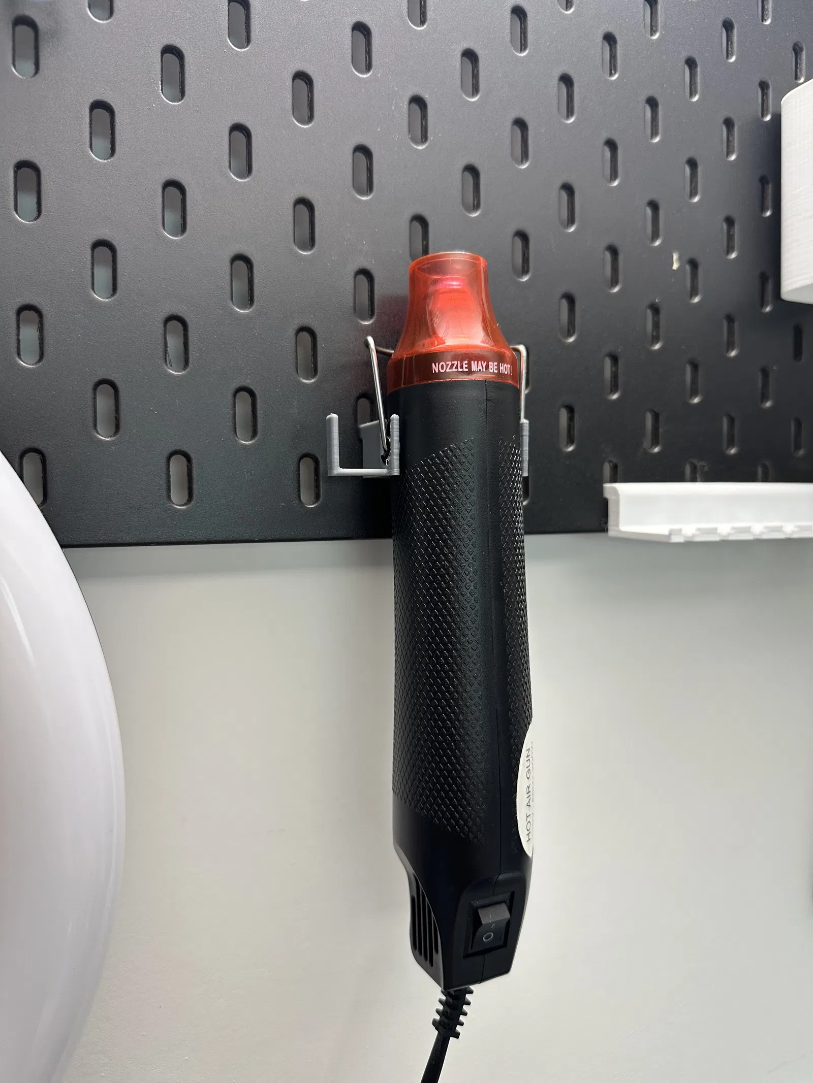 Chỗ cất giữ gọn gàng và tiện lợi cho máy thổi hơi nóng (HeatGun) trên bảng Ikea Skadis. In nhanh, ít vật liệu hỗ trợ, có chỗ cất dây cáp. Nhấn like và chia sẻ nhé!