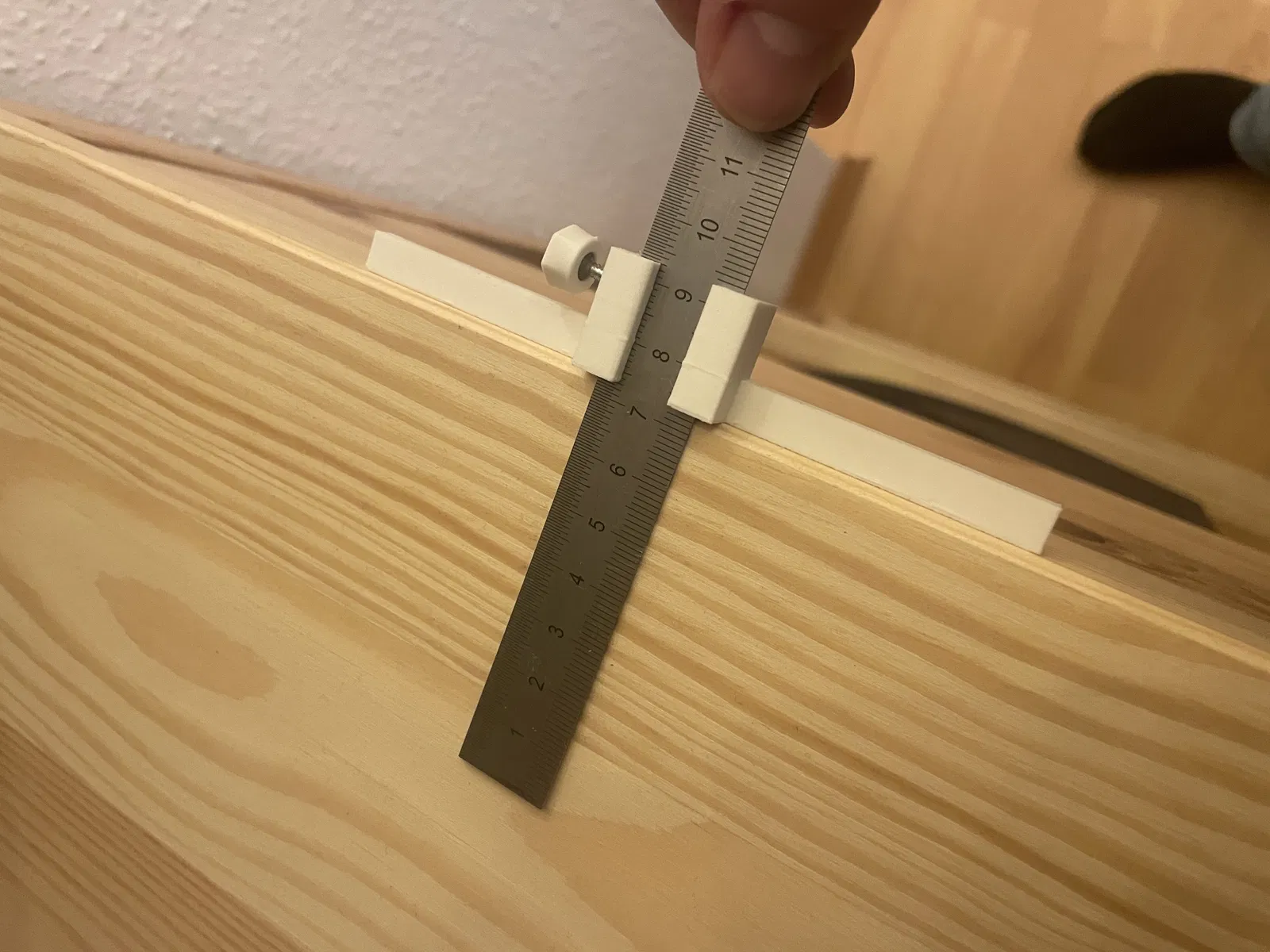 Chặn thước Lineal-Anschlag này dùng cho thước kim loại rộng 18mm, cao 1mm, có thể điều chỉnh dễ dàng bằng ốc siết. Thời gian in khoảng 35 phút với độ dày lớp 0.2mm và 20% infill. Rất hữu ích cho xưởng và công việc chế tác.