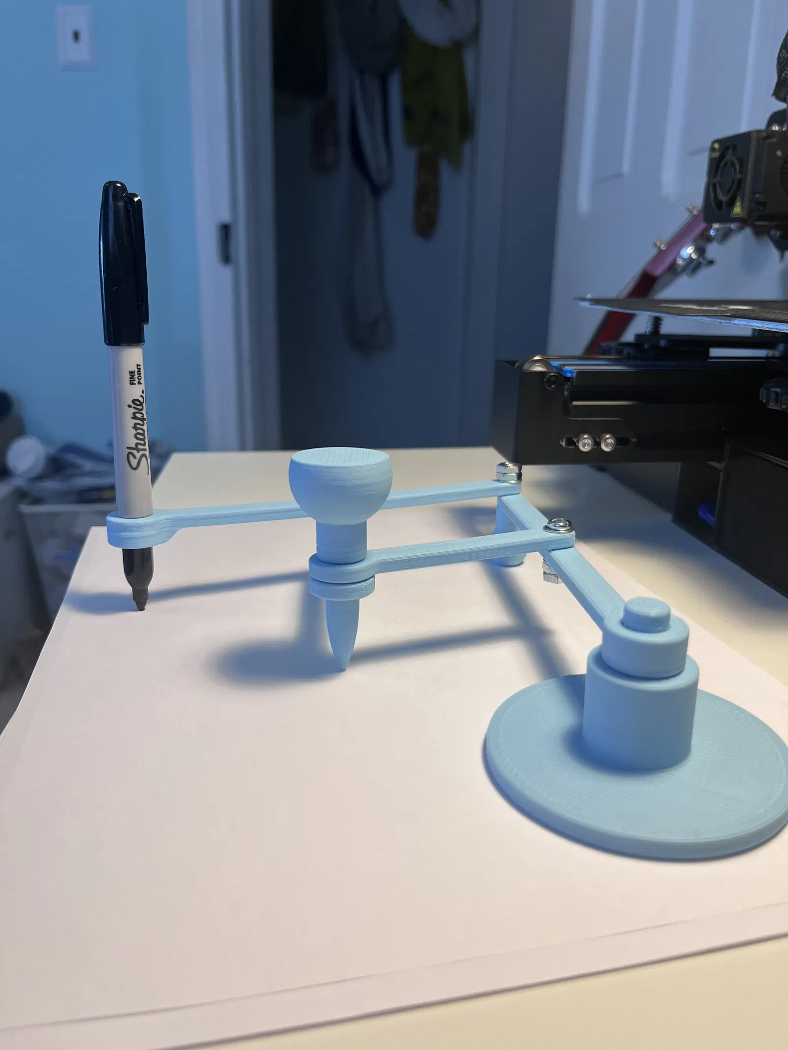 - Nếu bút sharpie không tiếp xúc tốt, hãy thêm một vòng đệm nữa giữa bộ phận đỡ và phần dưới của các cánh tay dài để tăng đòn bẩy cho cánh tay bút sharpie.